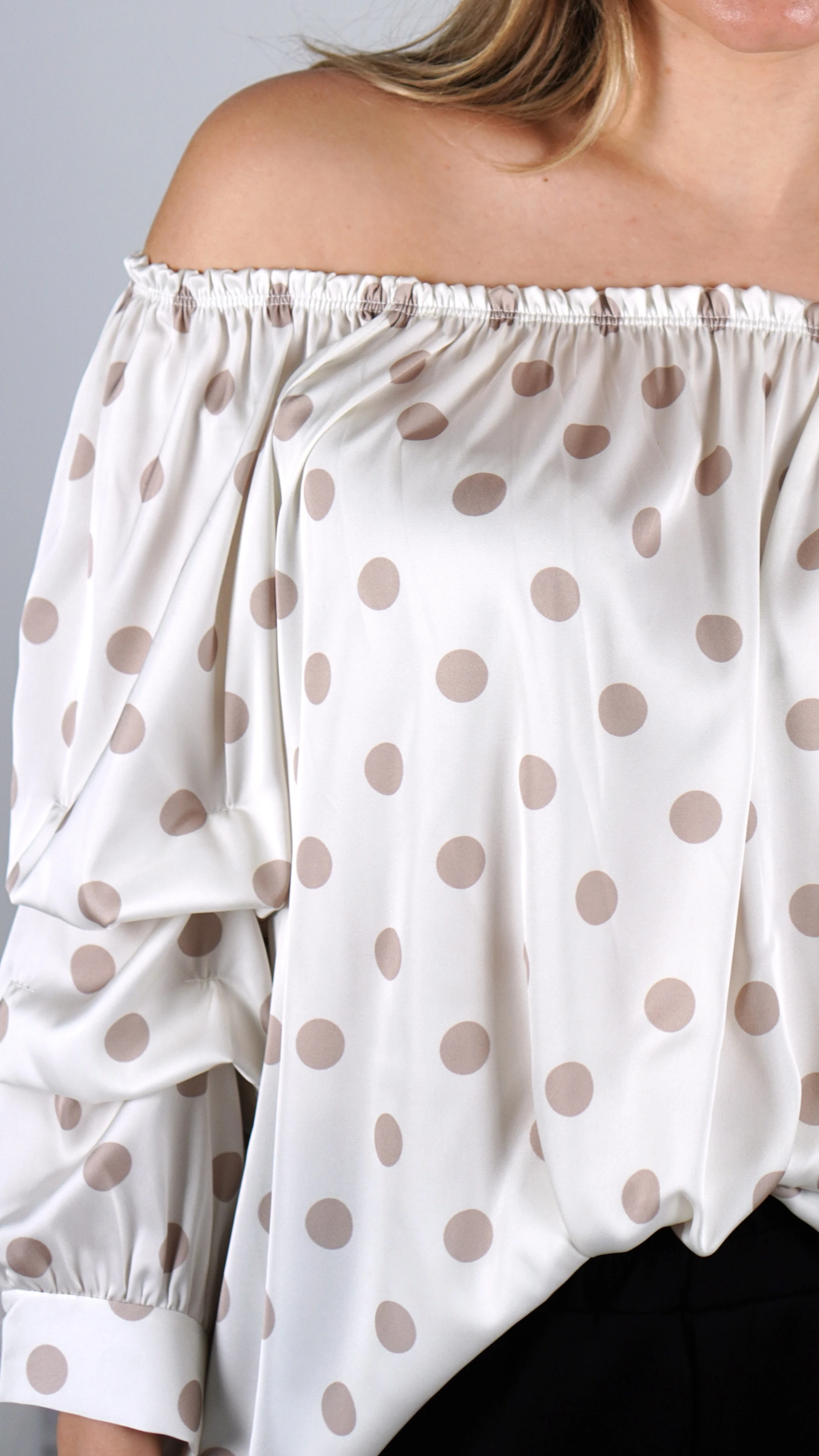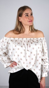 Bluzka Damska Hiszpanka Biała w Kropki Satynowa OLEVIO