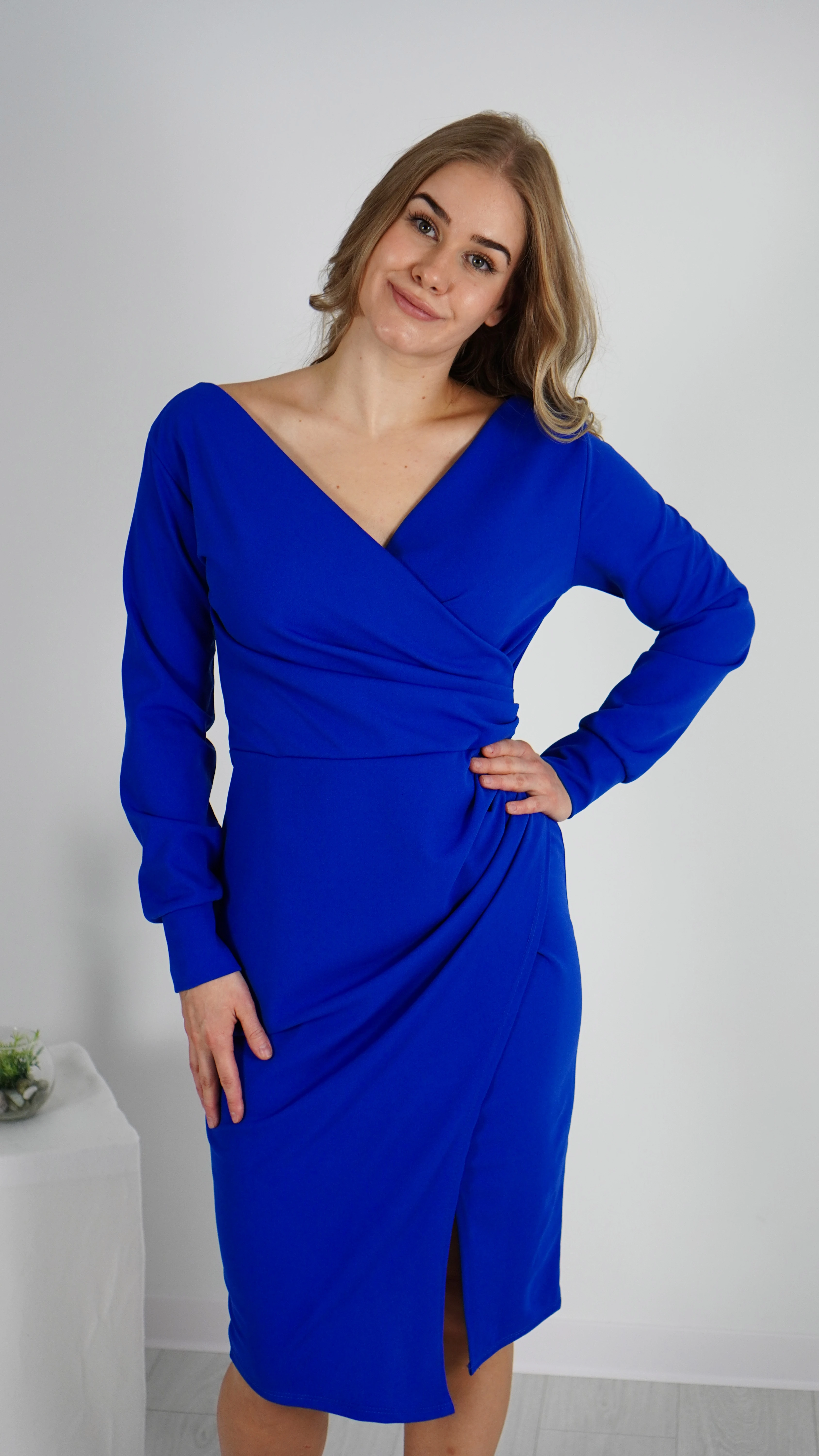 Chabrowa Sukienka Kopertowa z Długim Rękawem BELLA Midi
