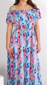 Długa Sukienka Hiszpanka Niebieska w Kwiaty FRANCI