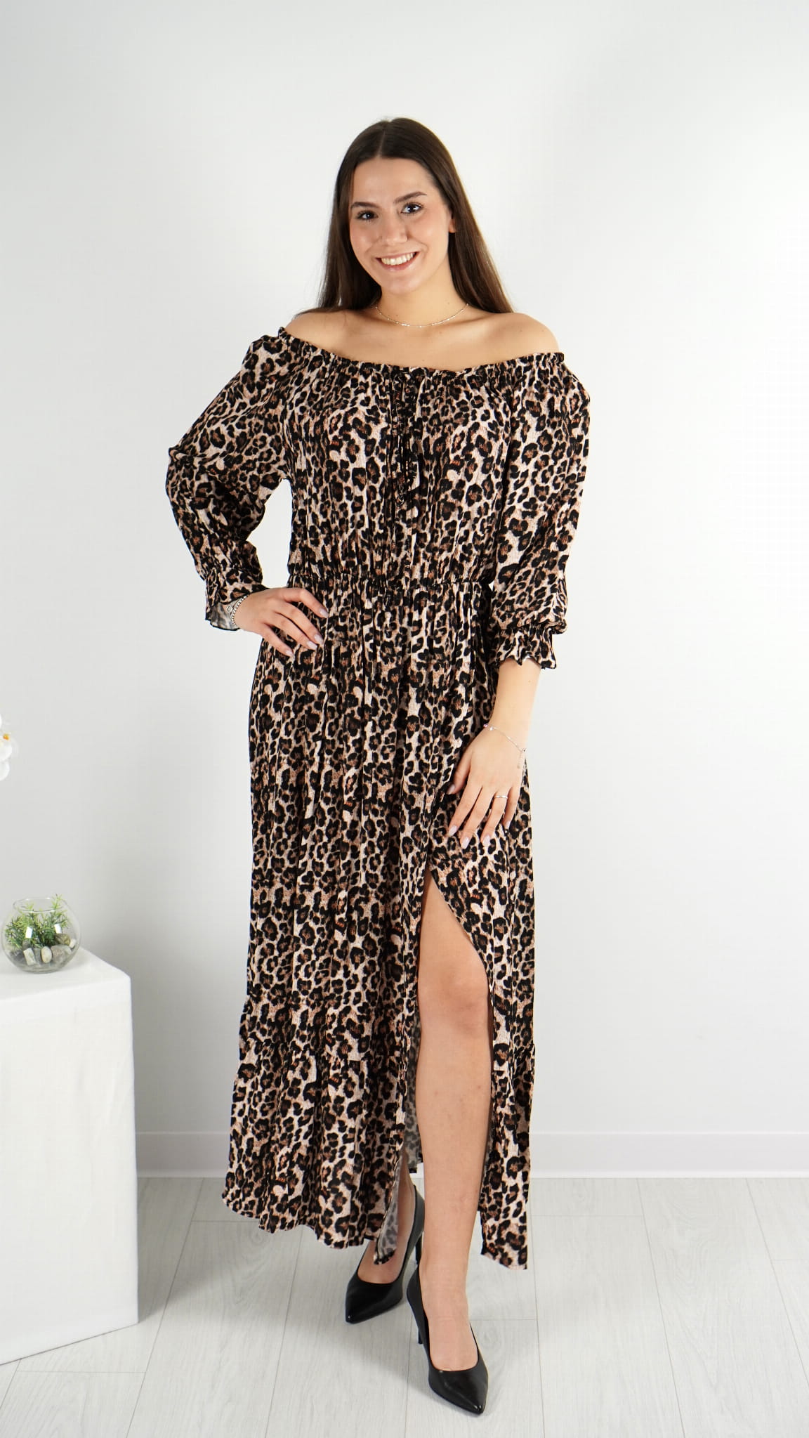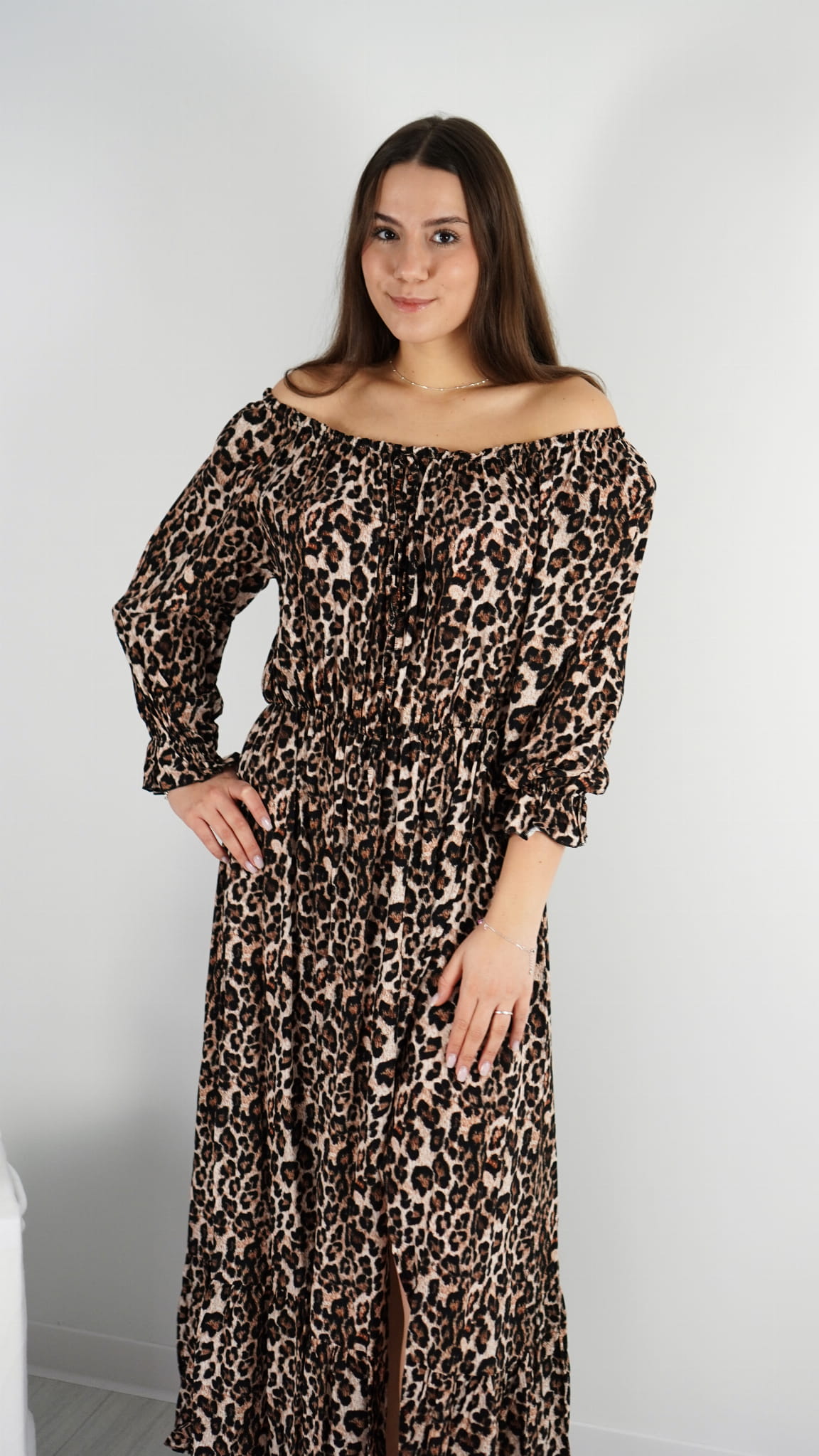 Długa Sukienka Hiszpanka RITA Panterka