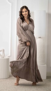 Długa Sukienka Satynowa Beżowa JUDIO