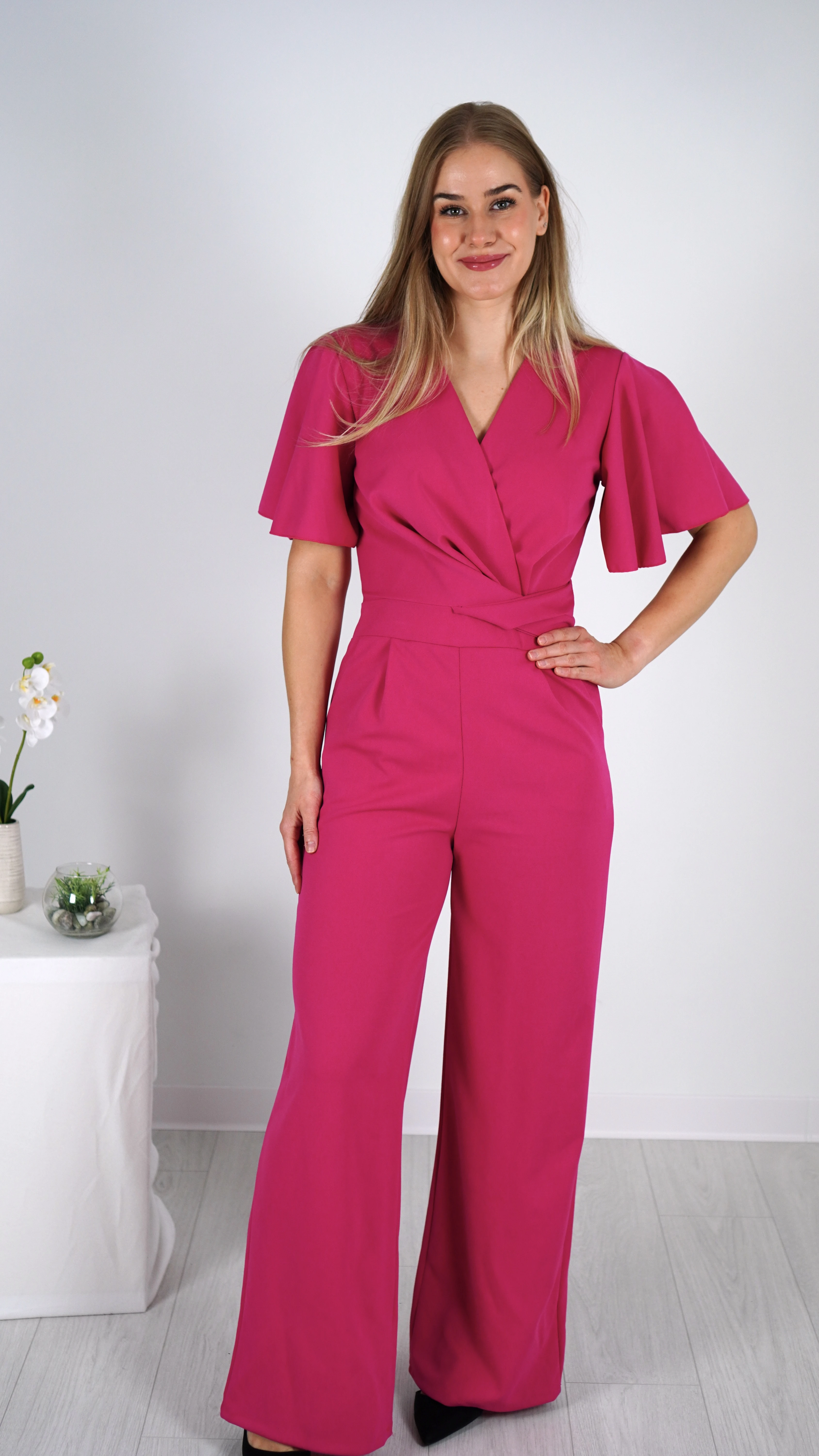 Ten modny kombinezon damski w intensywnym, mocnym kolorze przyciąga spojrzenia i wyróżnia się na tle klasycznych stylizacji. To doskonała alternatywa dla sukienki na komunię, wesele, przyjęcia rodzinne czy inne eleganckie okazje.