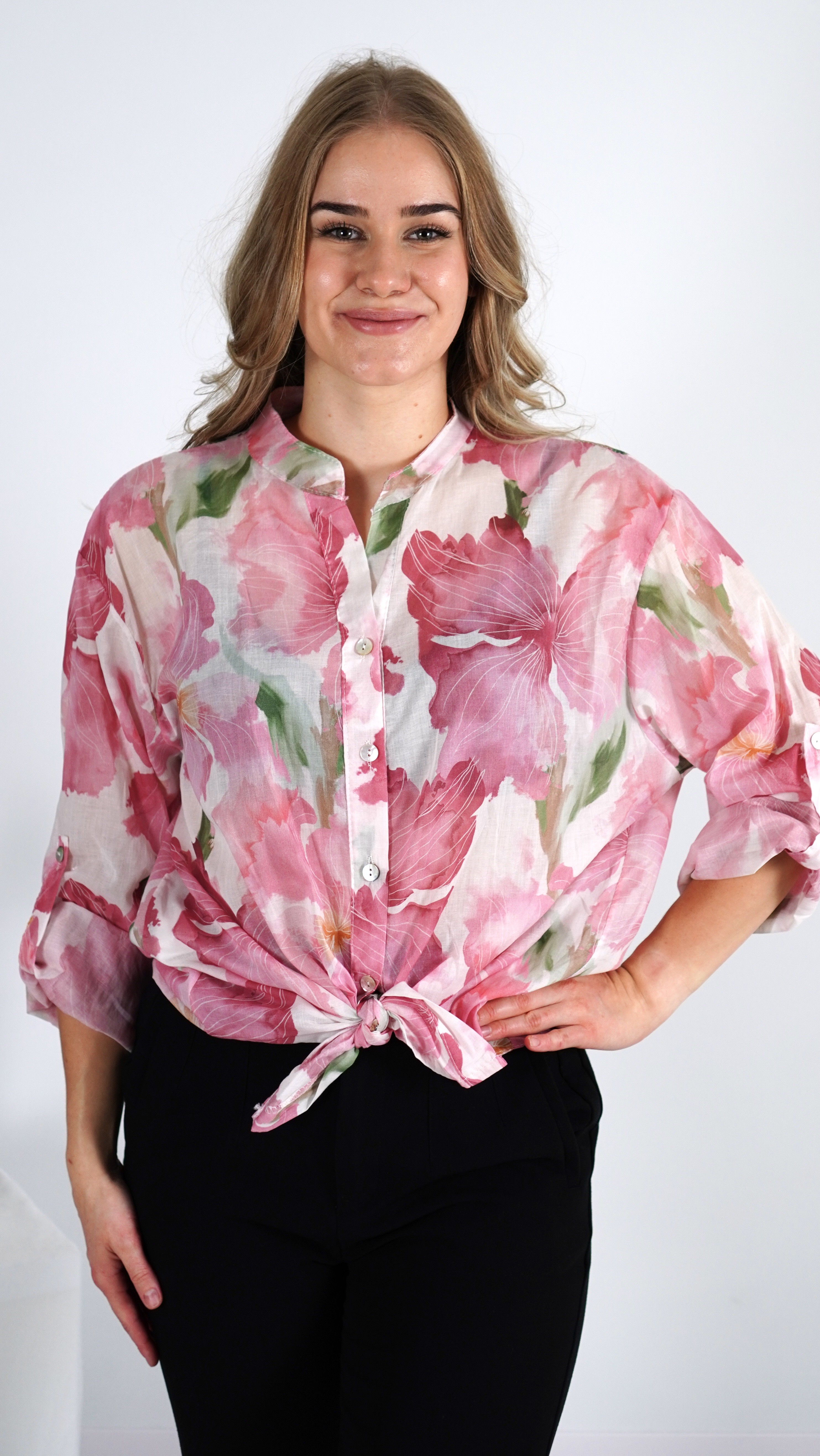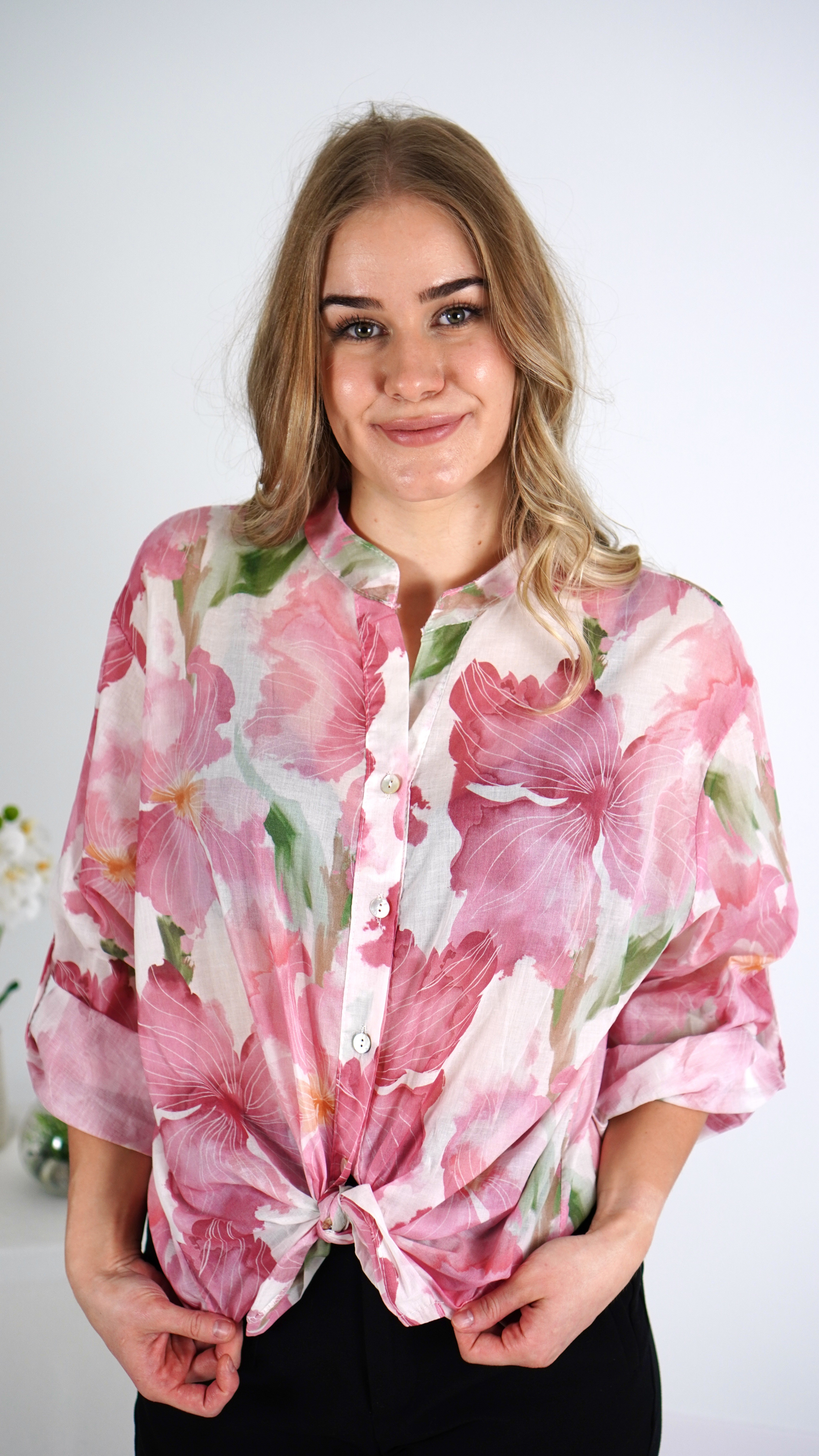 Koszula damska różowa w kwiaty – lekka, zwiewna, bawełniana