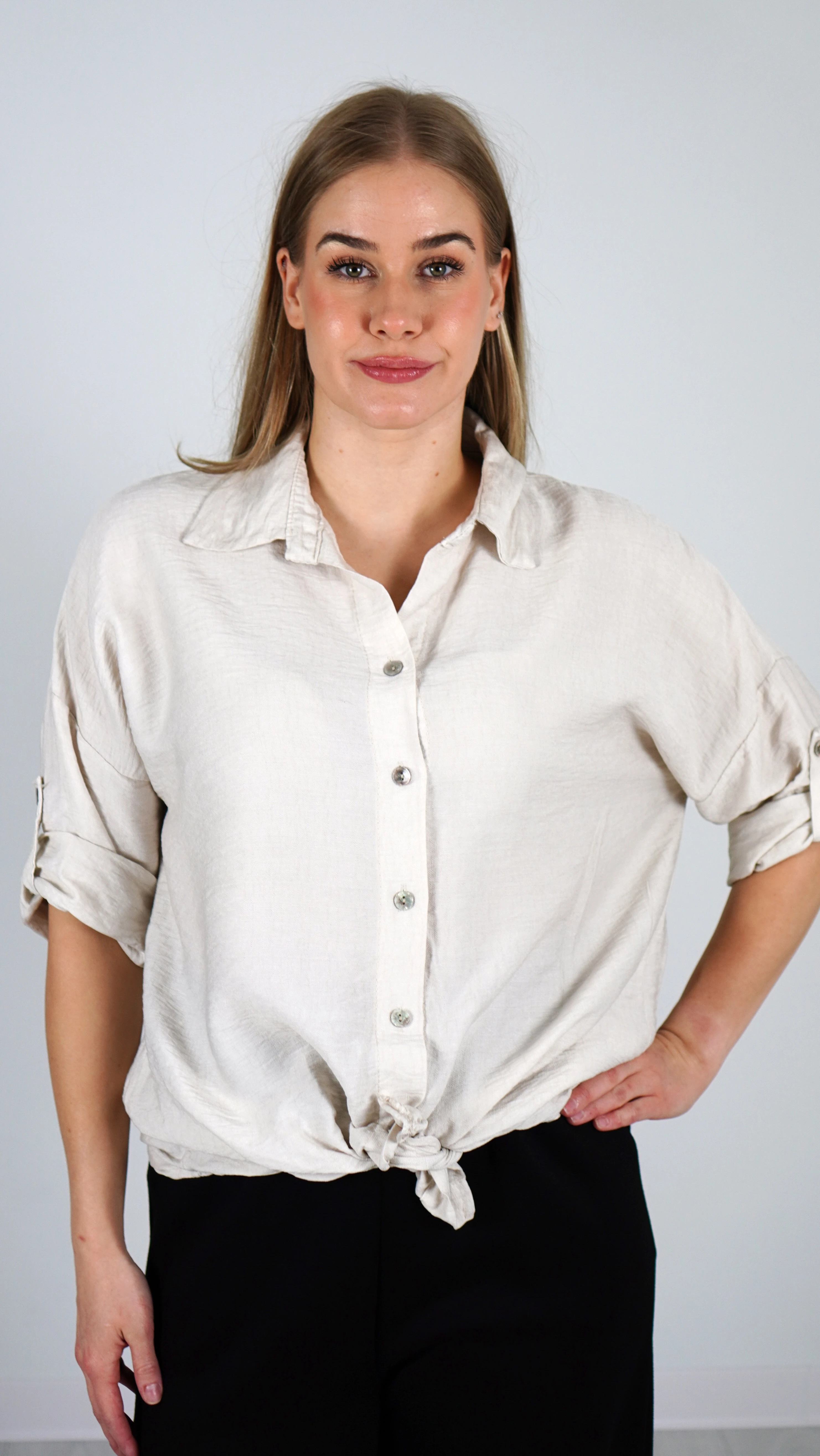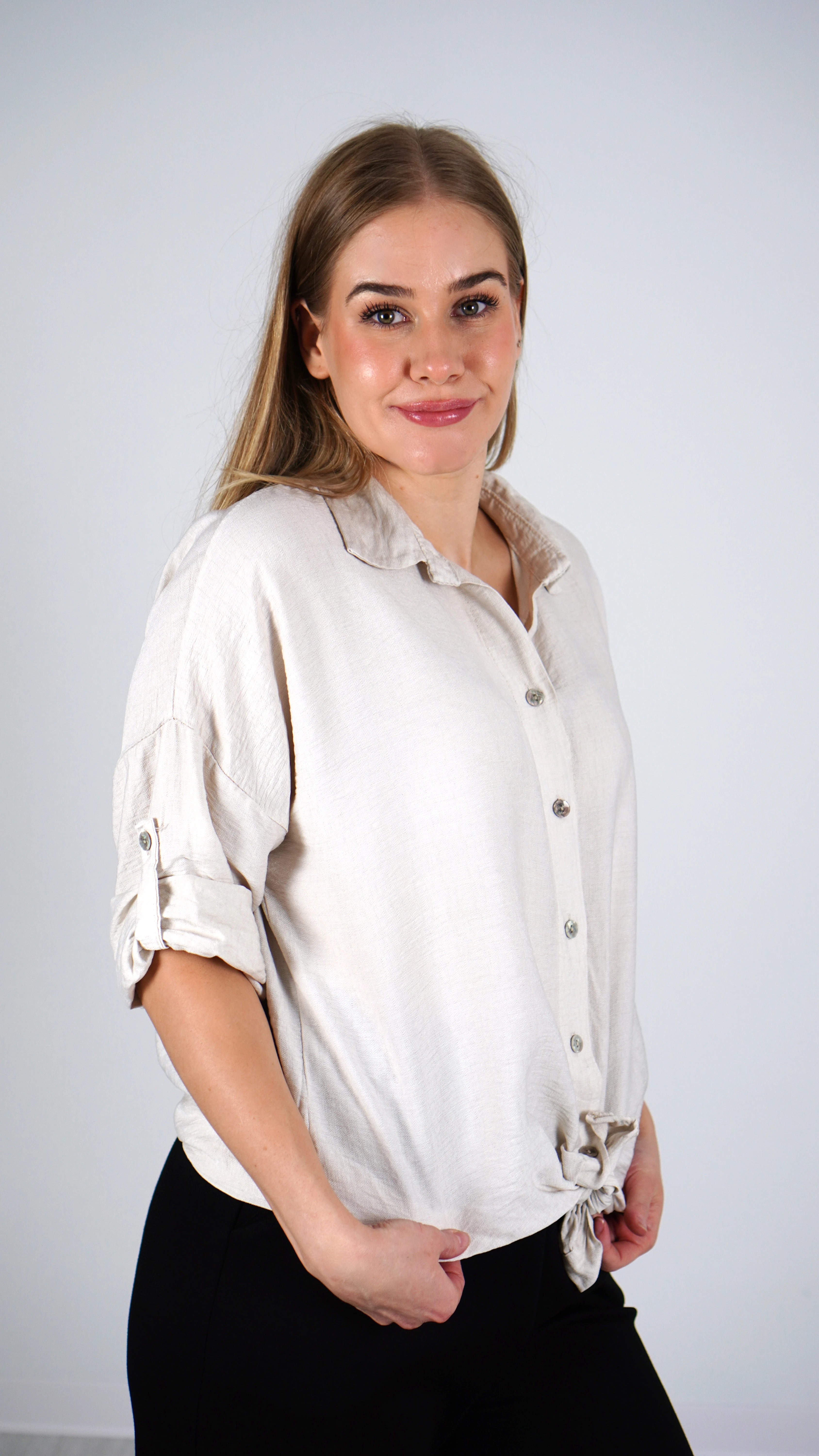 Koszula Damska Wiązana Beżowa POLIA