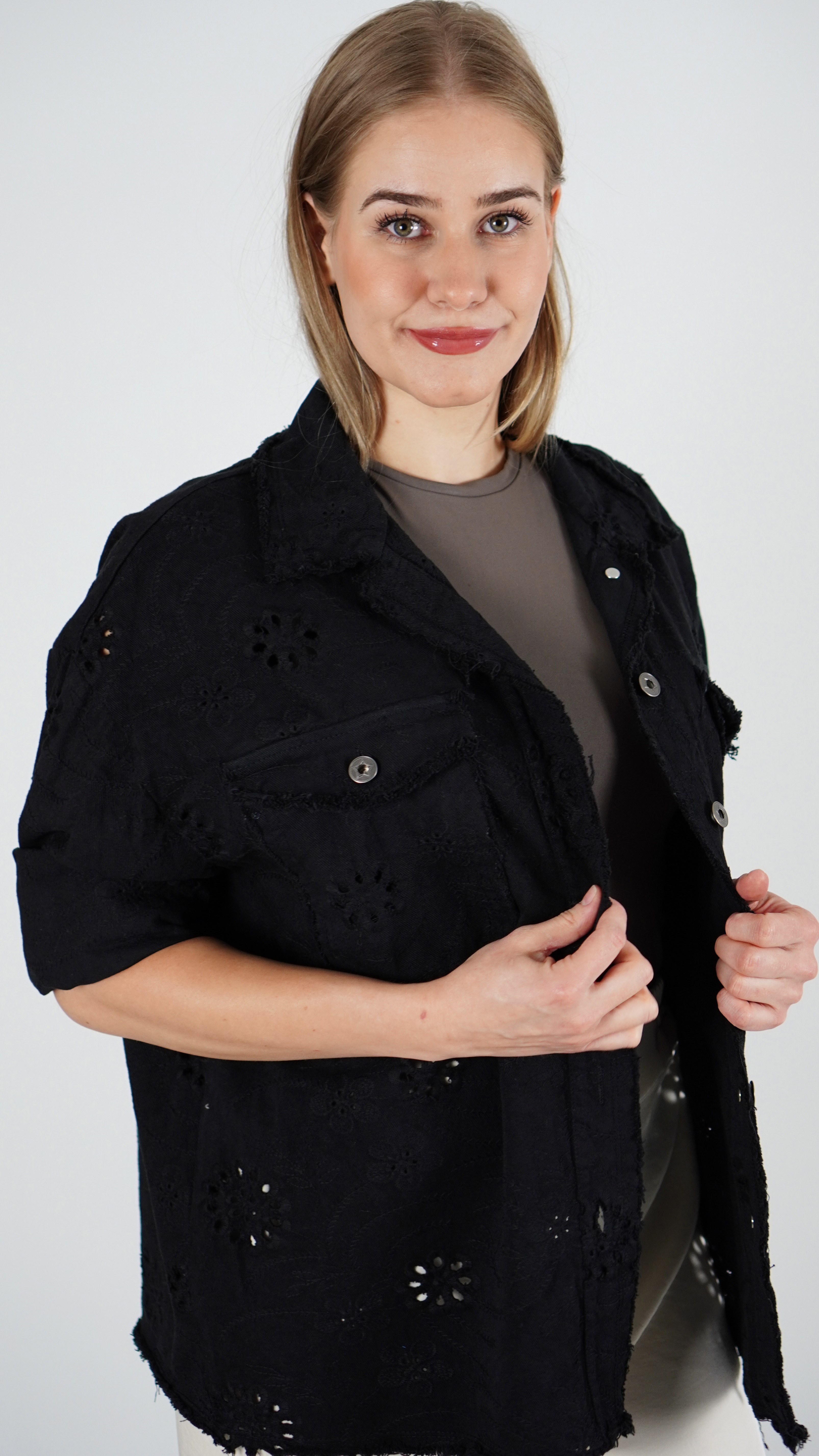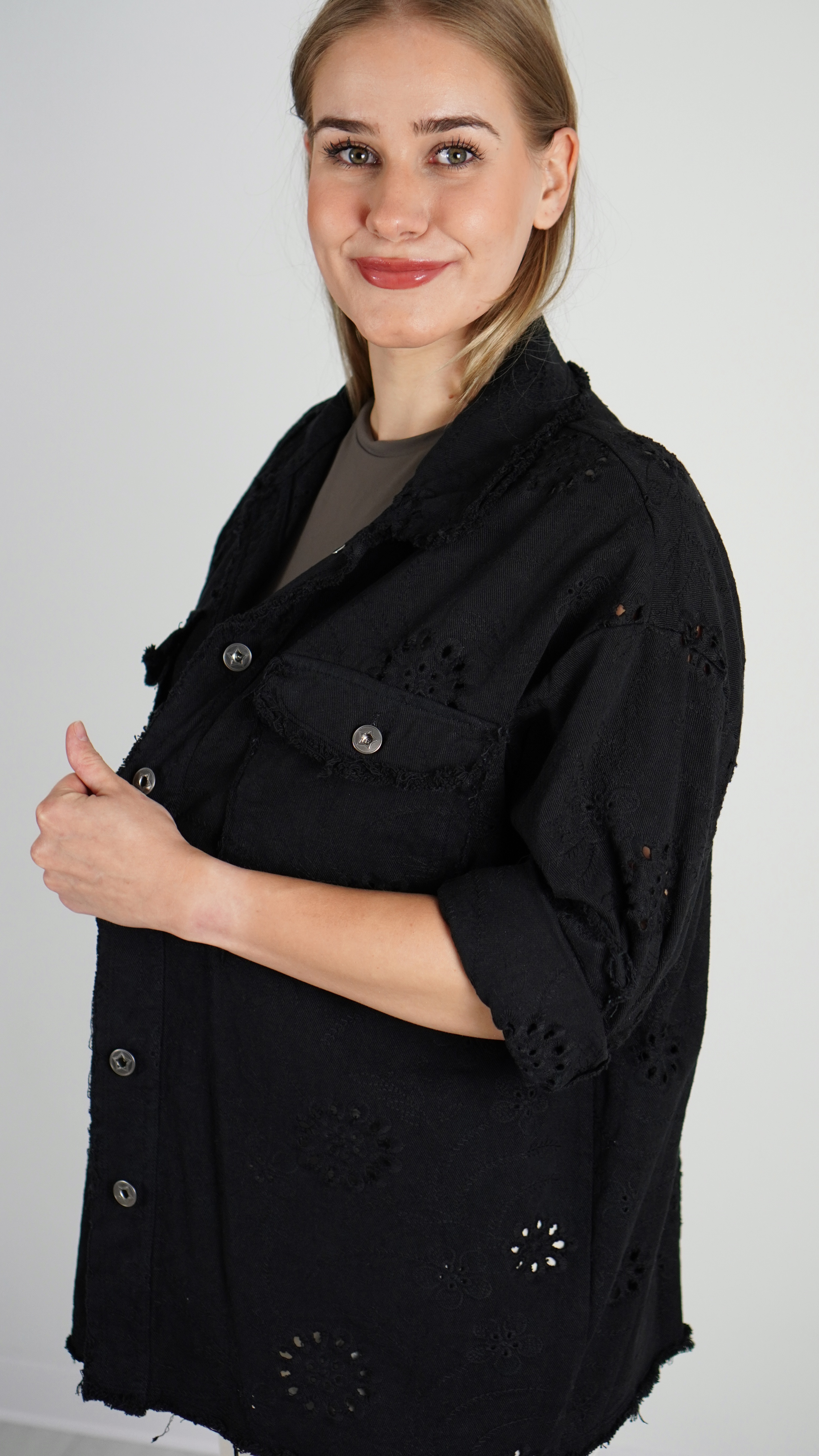Kurtka Jeansowa Czarna Ażurkowa CANRI Oversize
