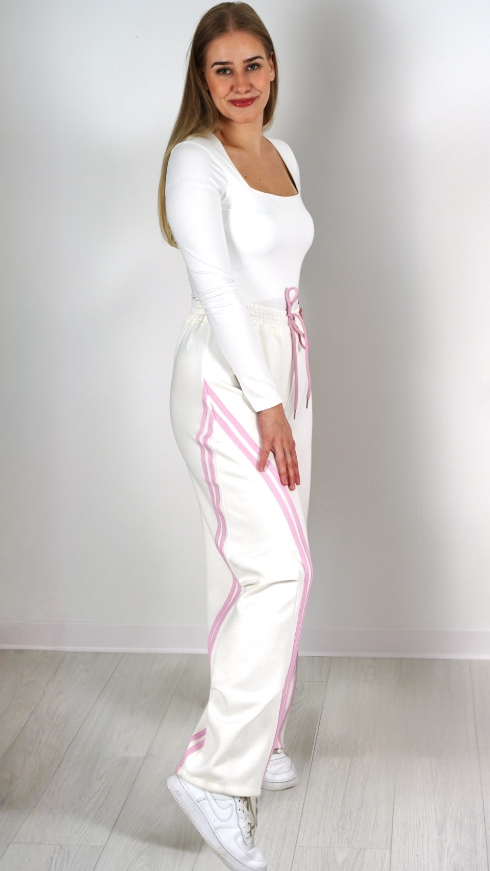 Luźne spodnie z szerokimi nogawkami, gumka w pasie + sznurek do regulacji.