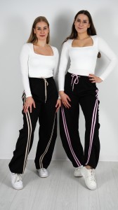 Spodnie Damskie Materiałowe Czarne z Beżem ADIO