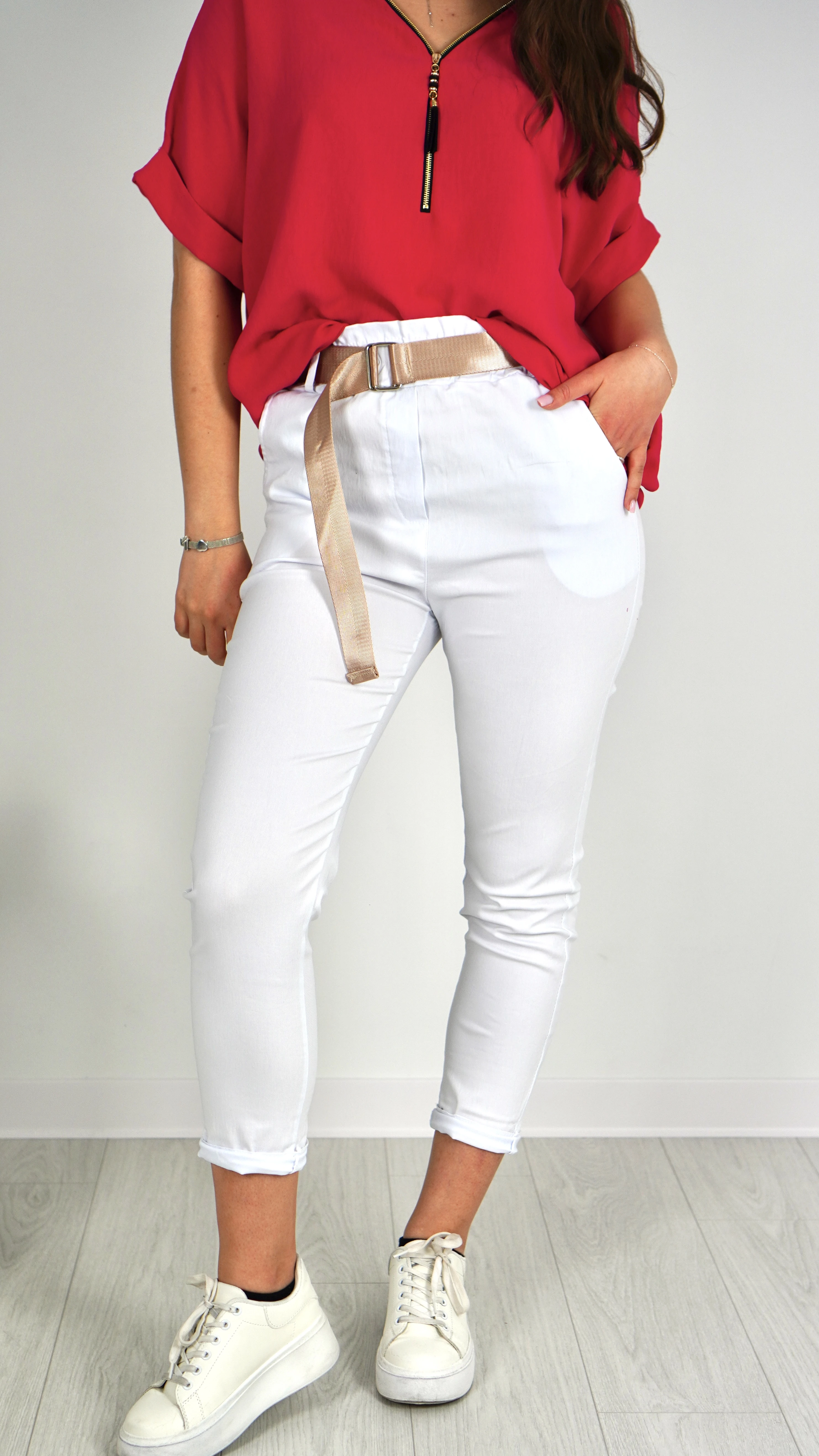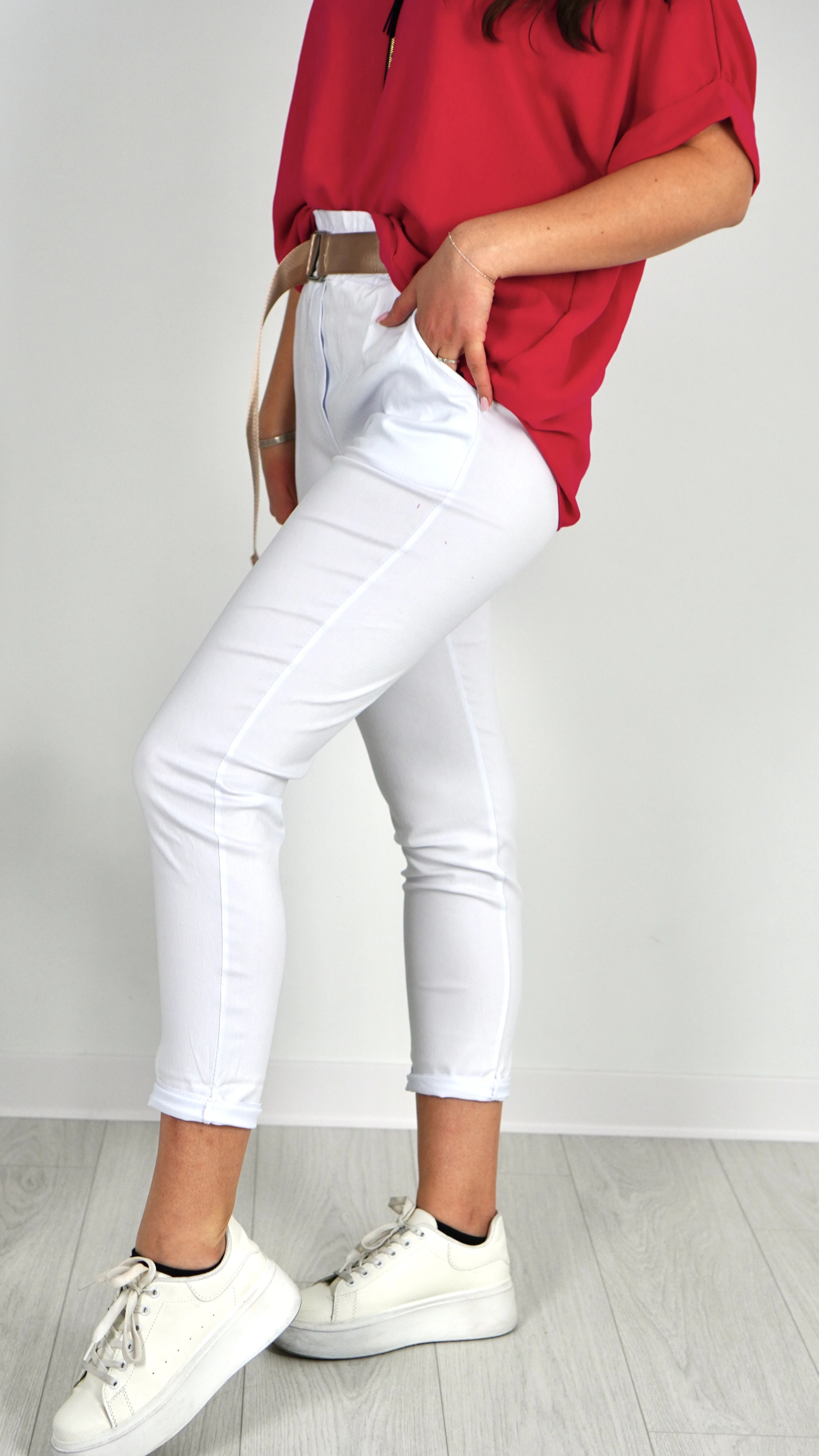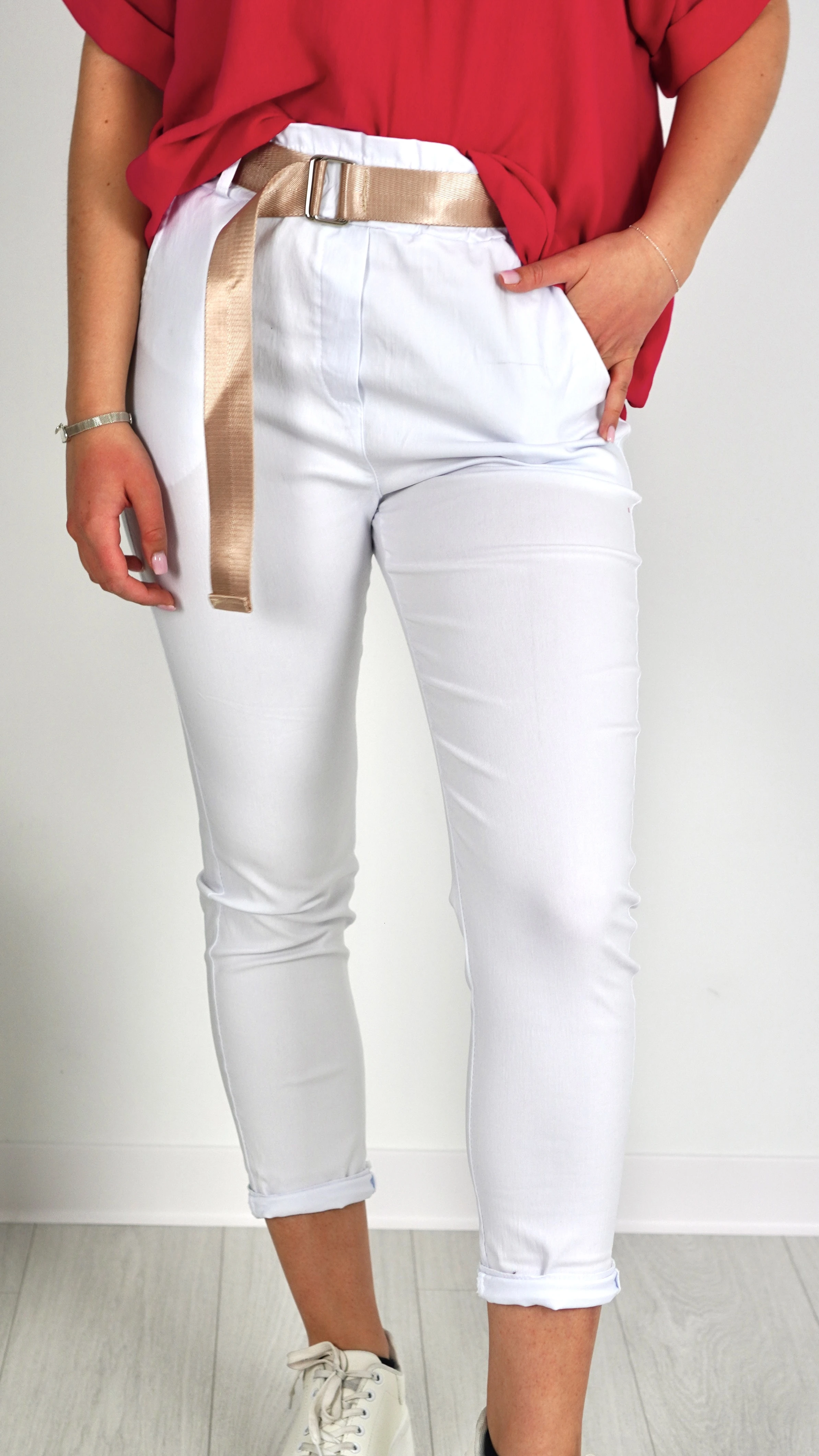 Spodnie Damskie z Paskiem Białe GNIEVI