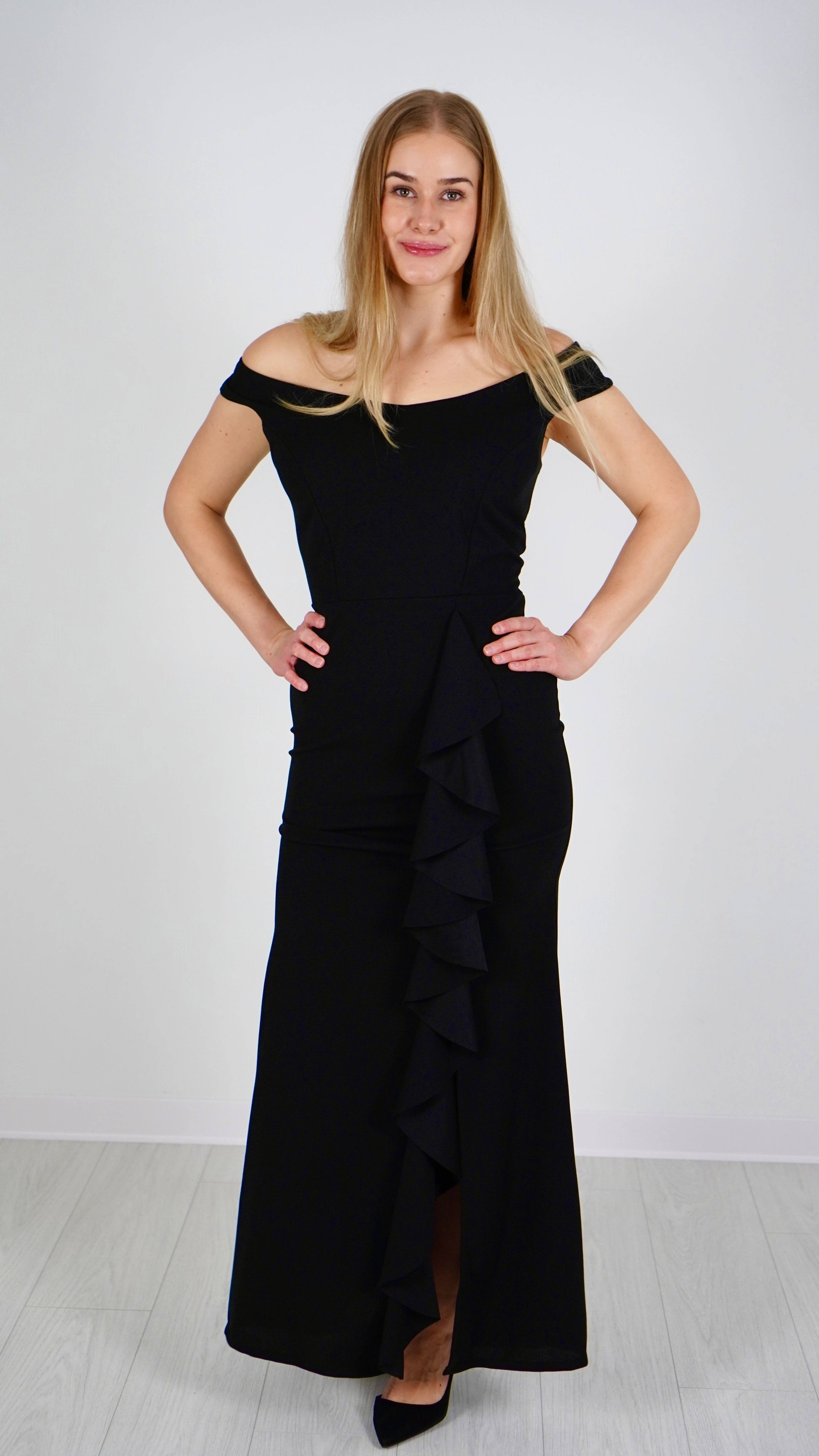 Sukienka Elegancka z Falbaną Czarna MERMIO Maxi