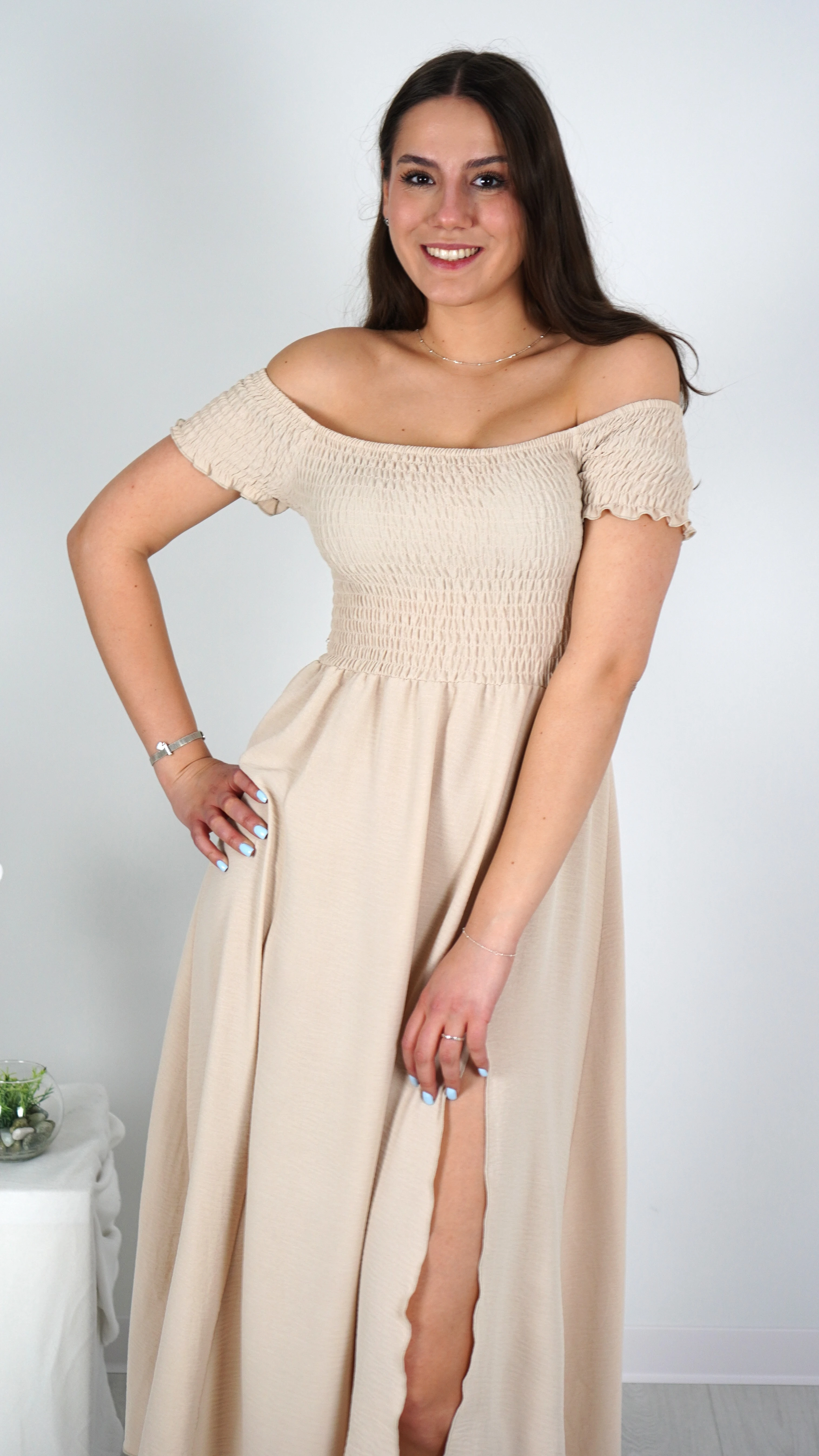 Sukienka Hiszpanka Maxi Beżowa KRENIO