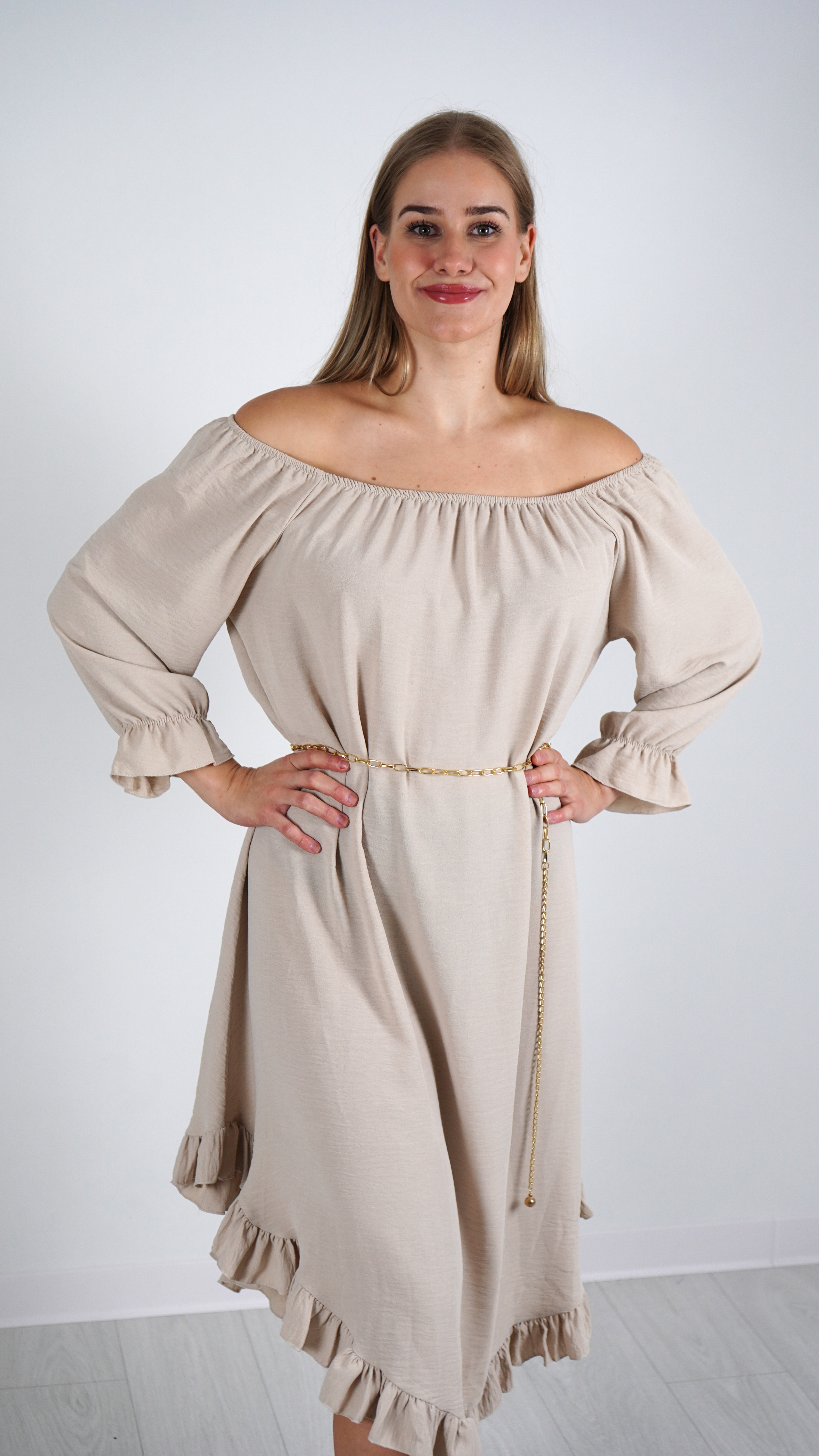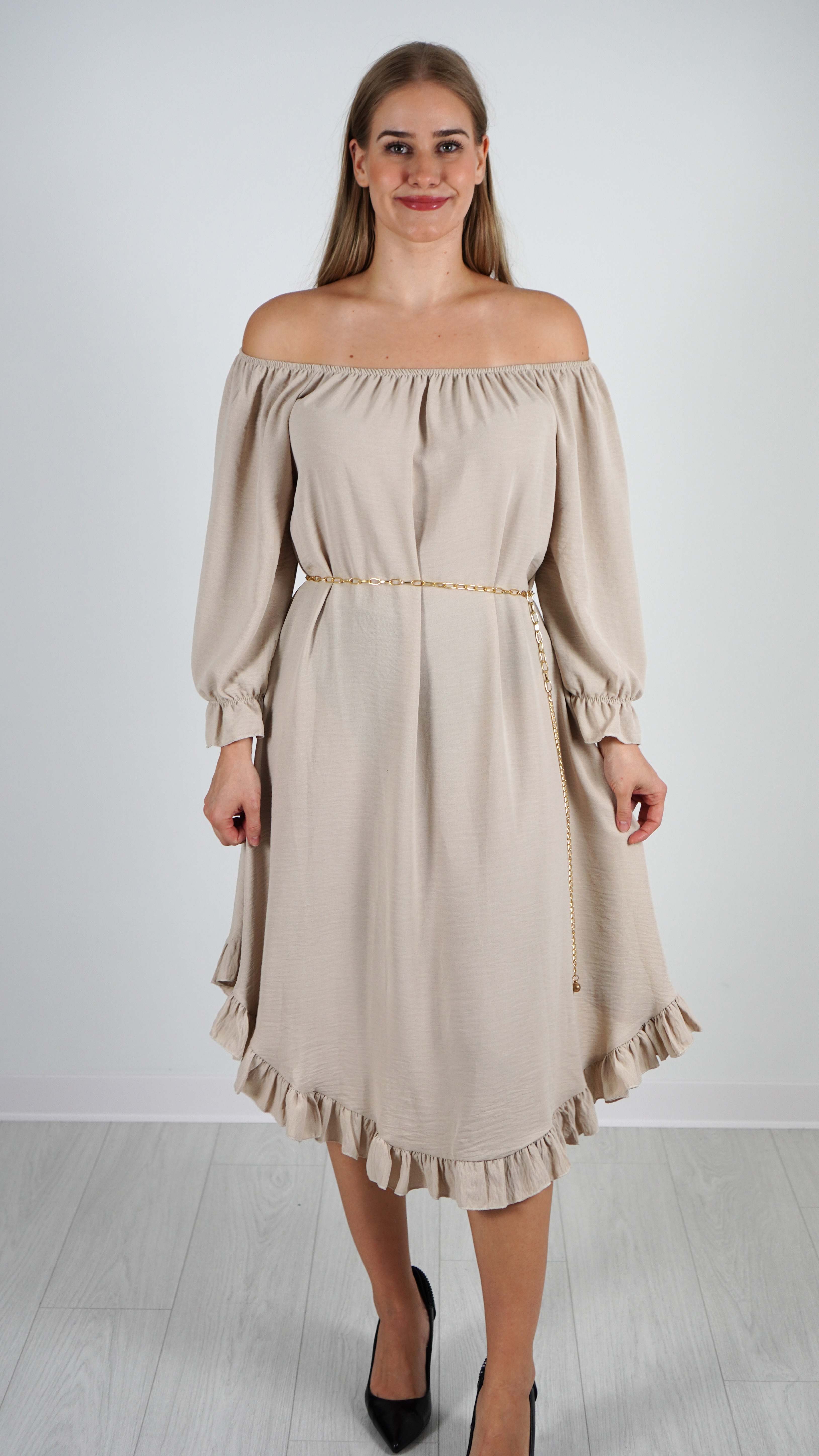 Sukienka Hiszpanka z Paskiem Beżowa ELYZO