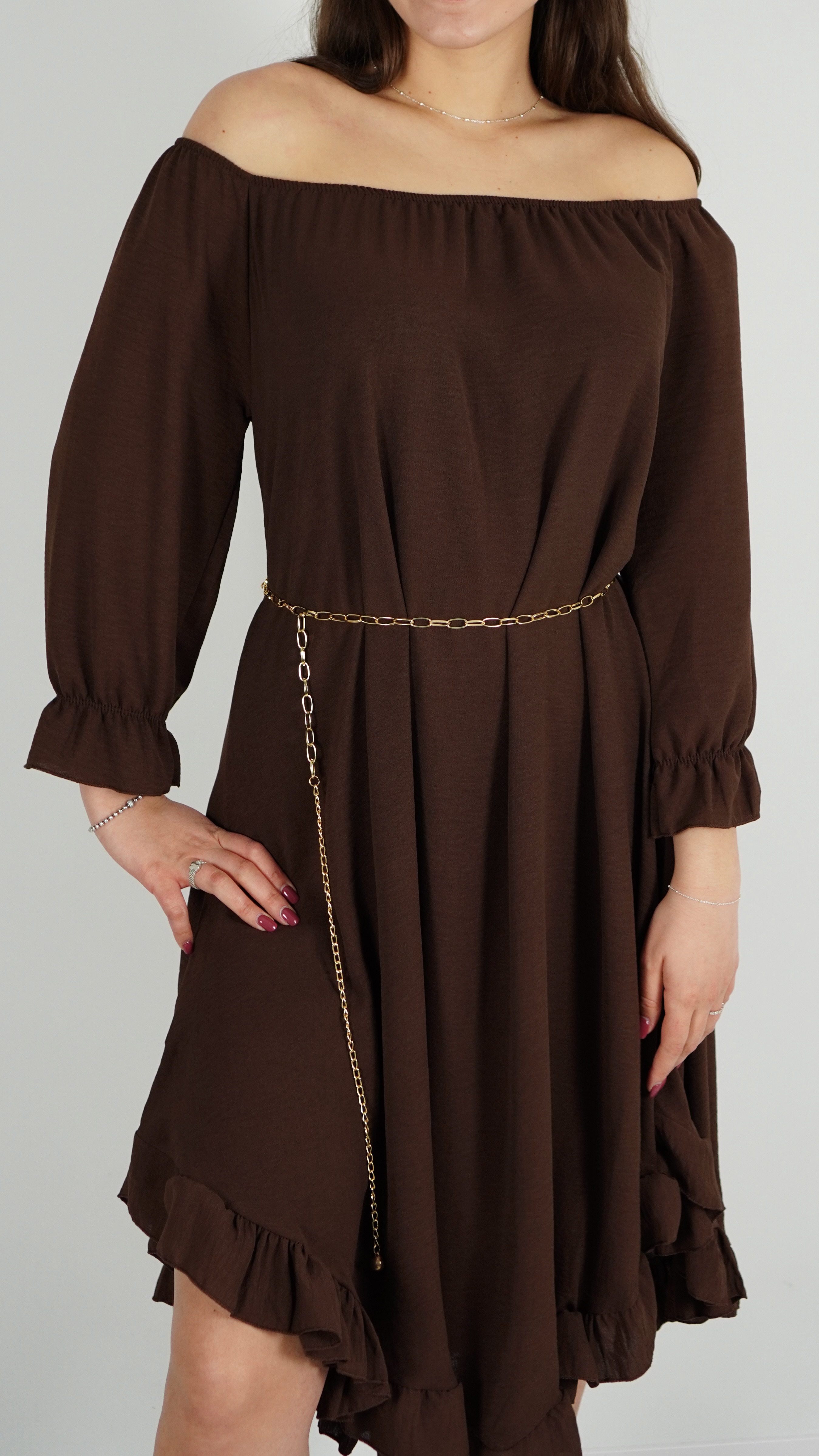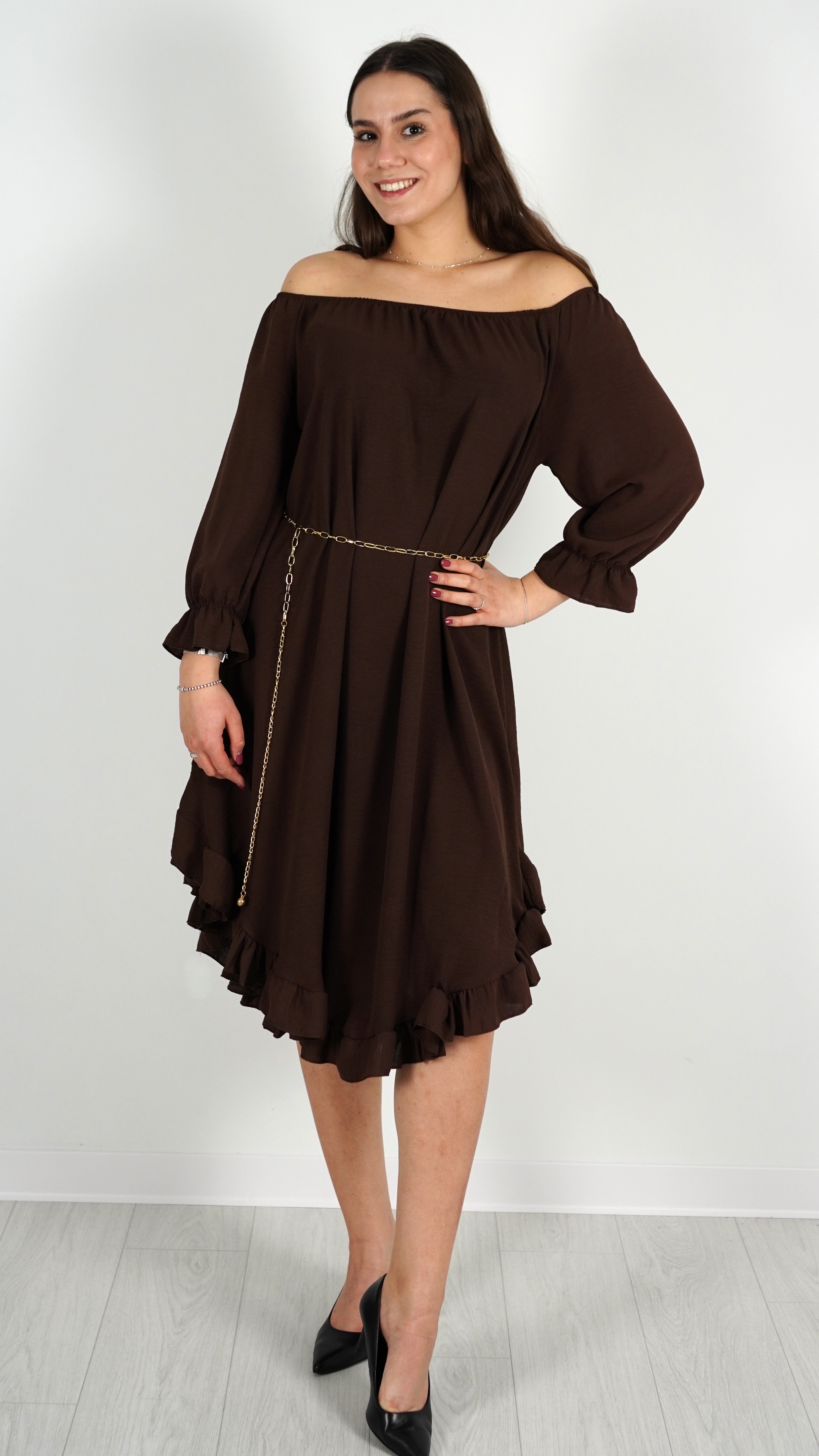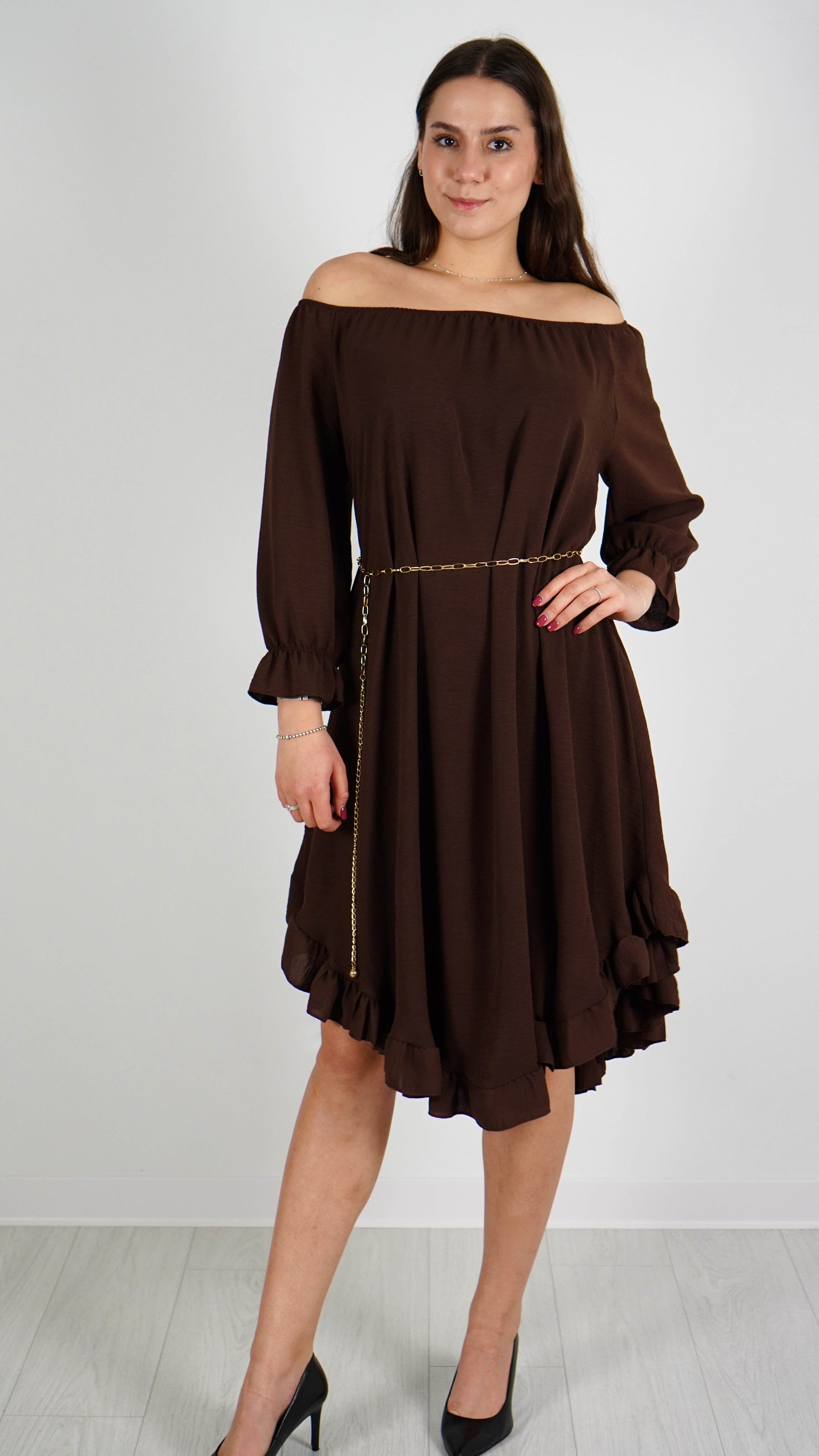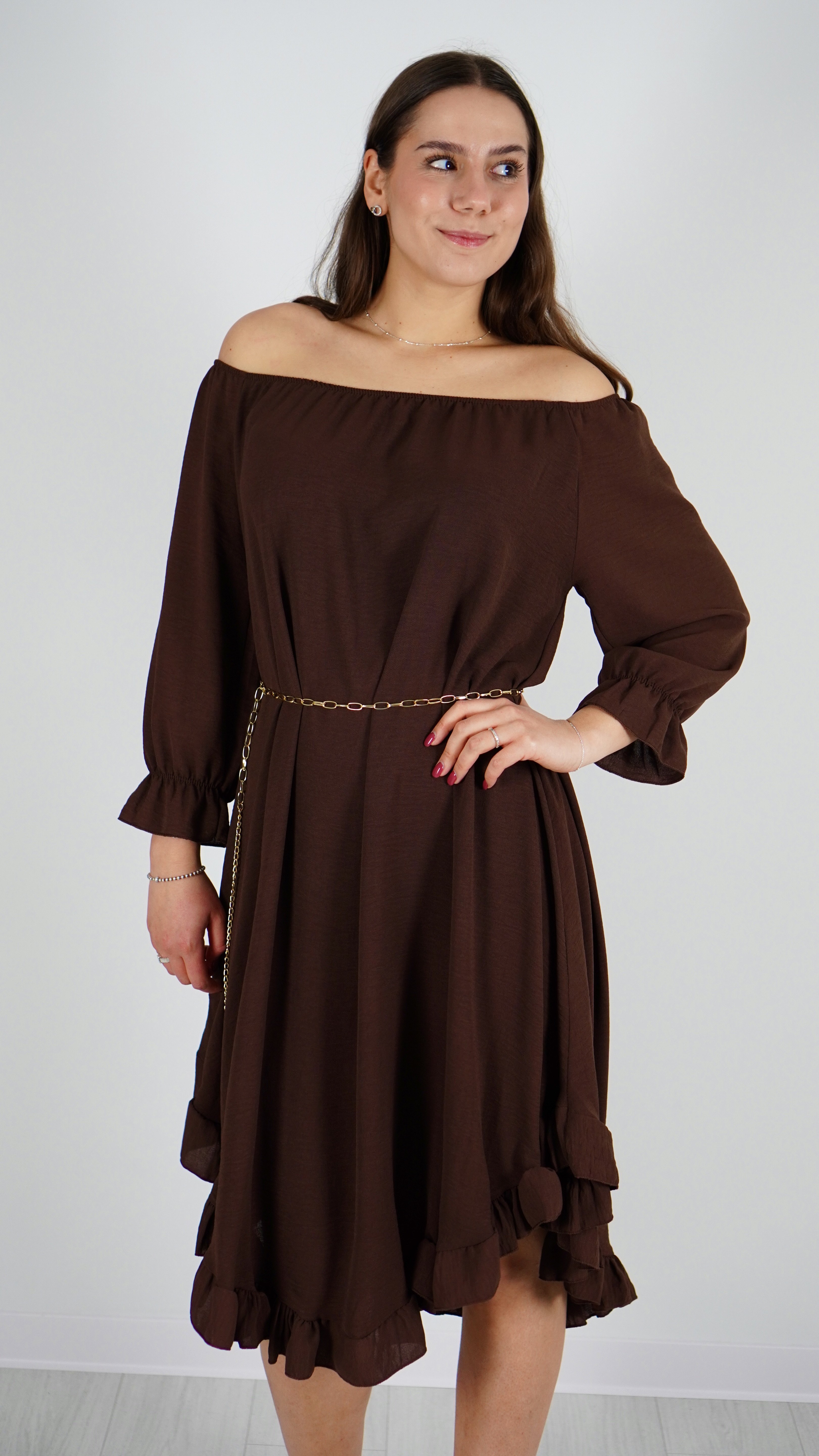 Sukienka Hiszpanka z Paskiem Brązowa ELYZO