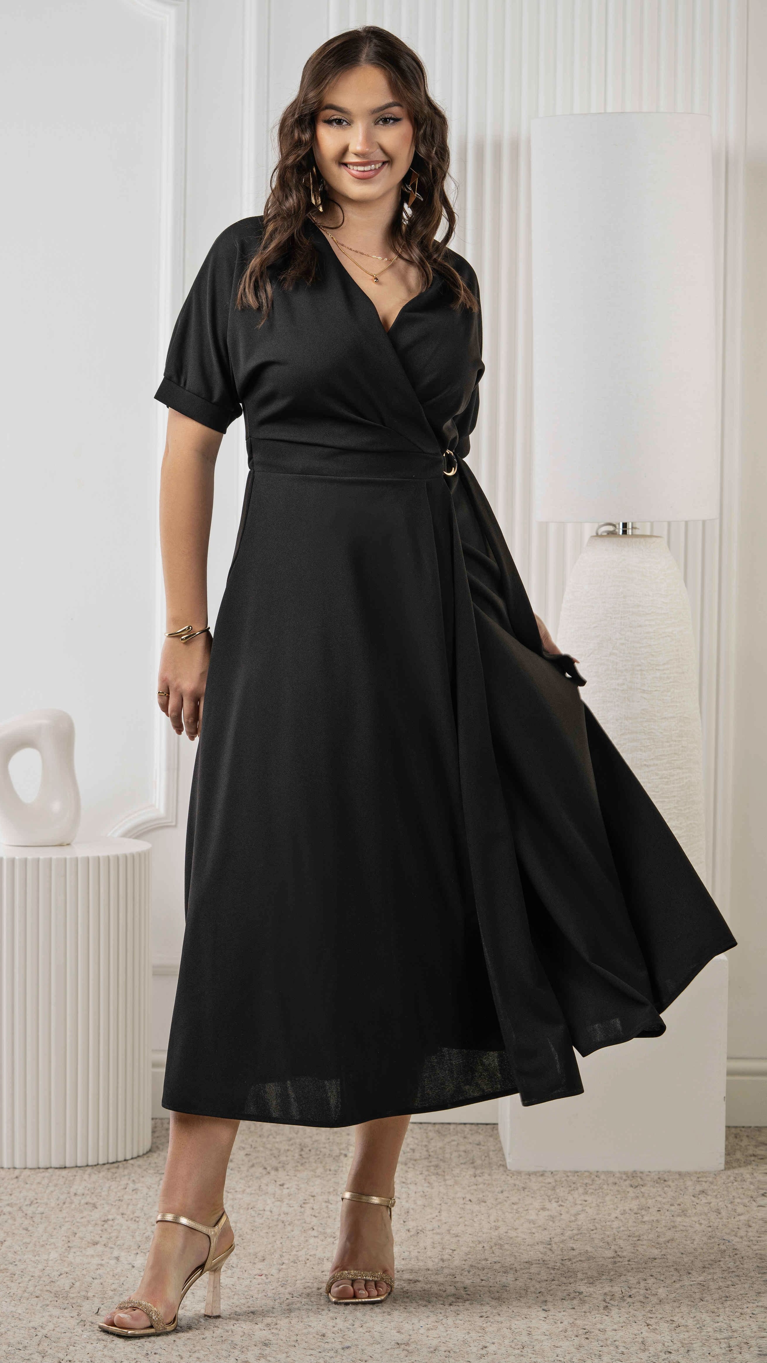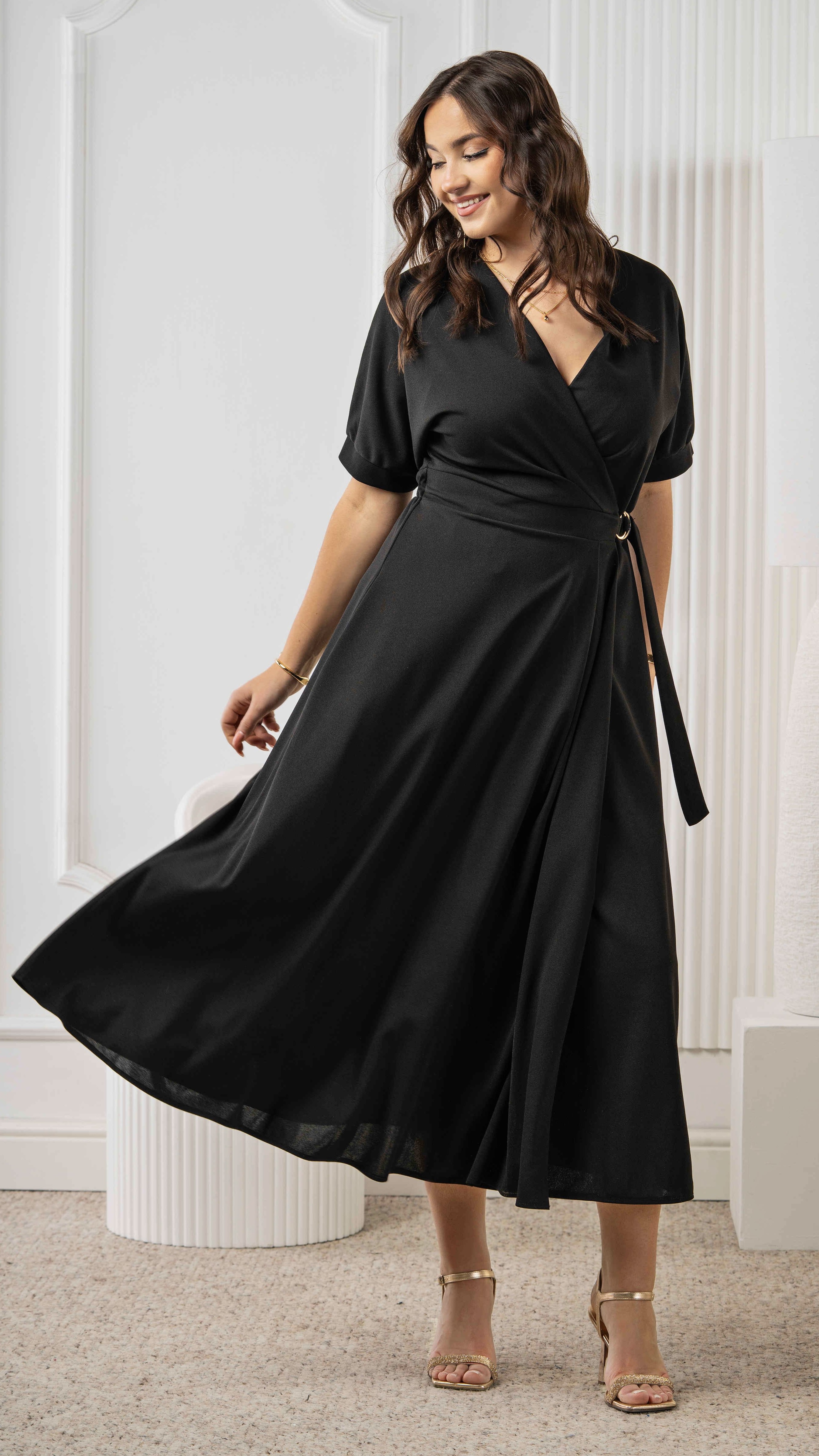 Czarna sukienka kopertowa maxi – elegancka sukienka damska