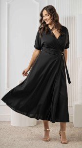 Sukienka Kopertowa Długa Czarna WILSI