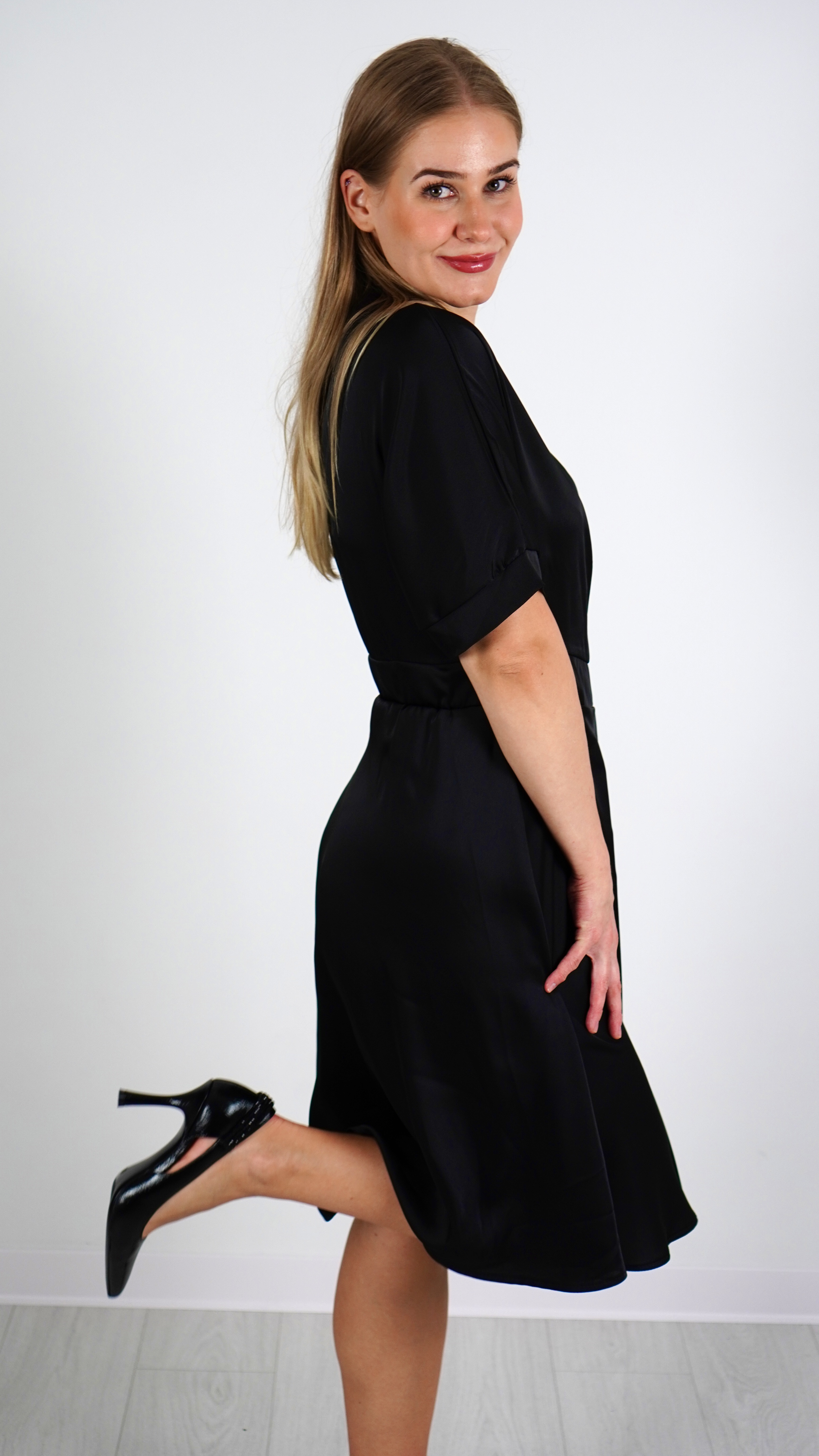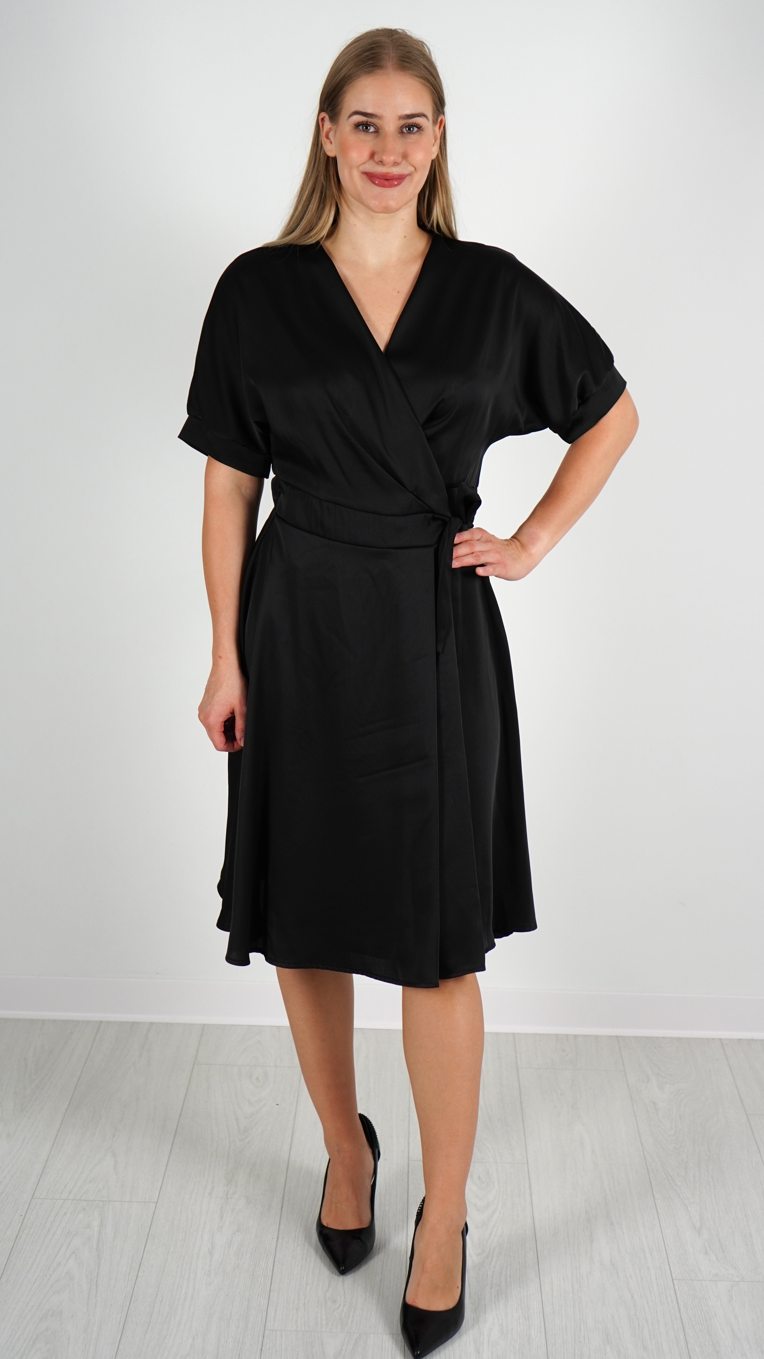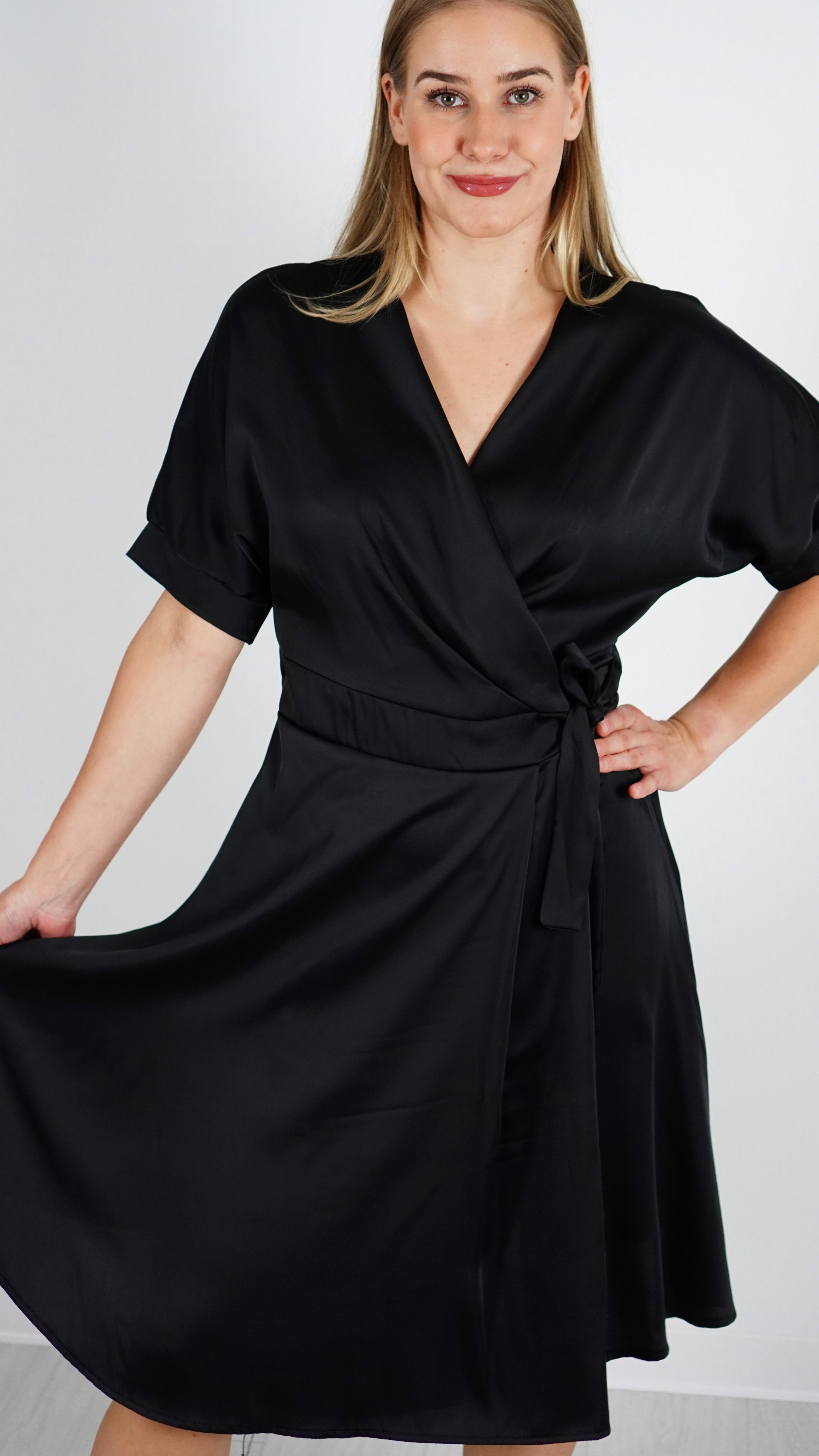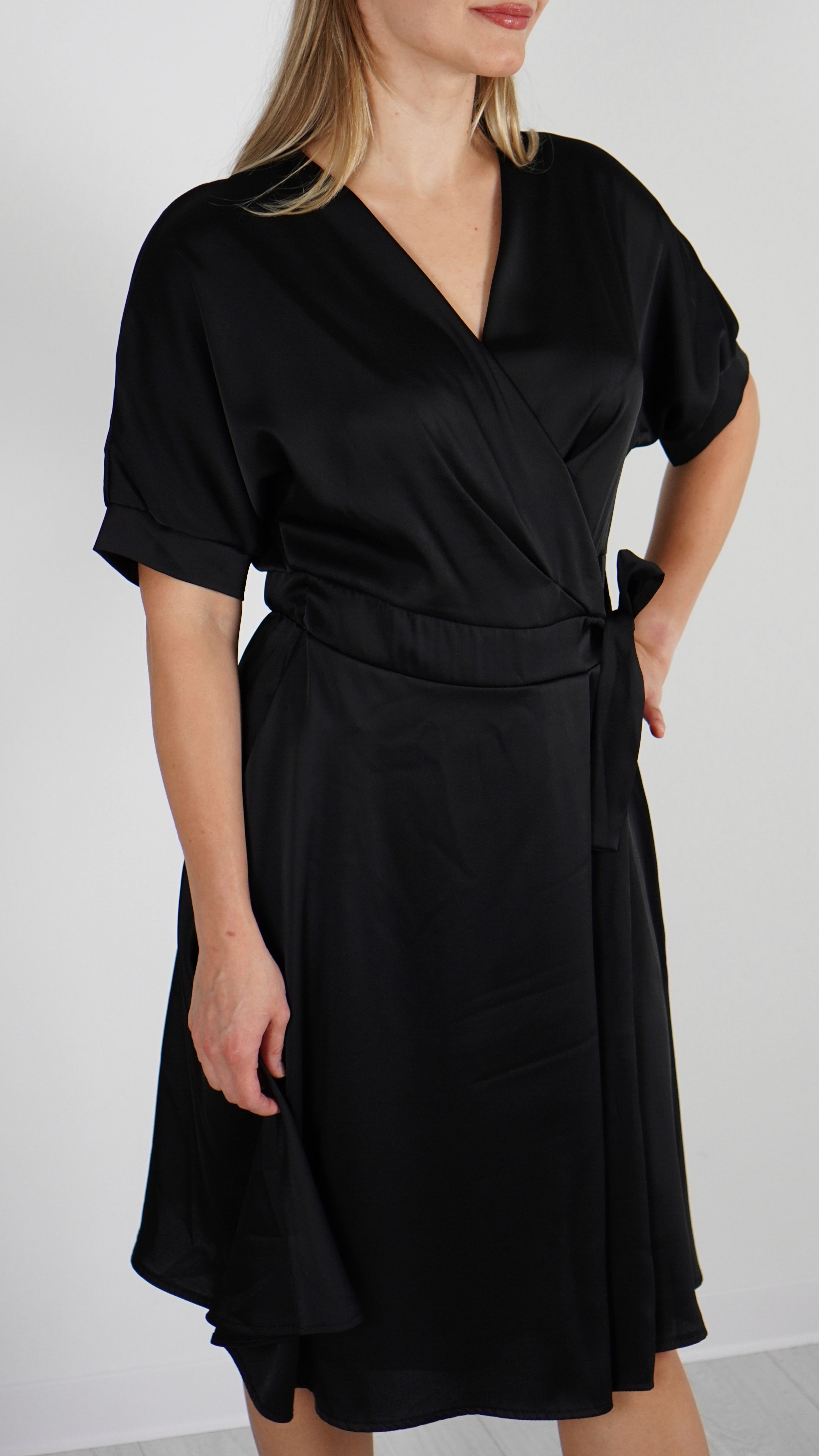 Sukienka Kopertowa Satynowa Czarna SEKRITA