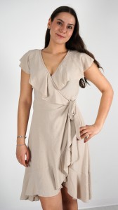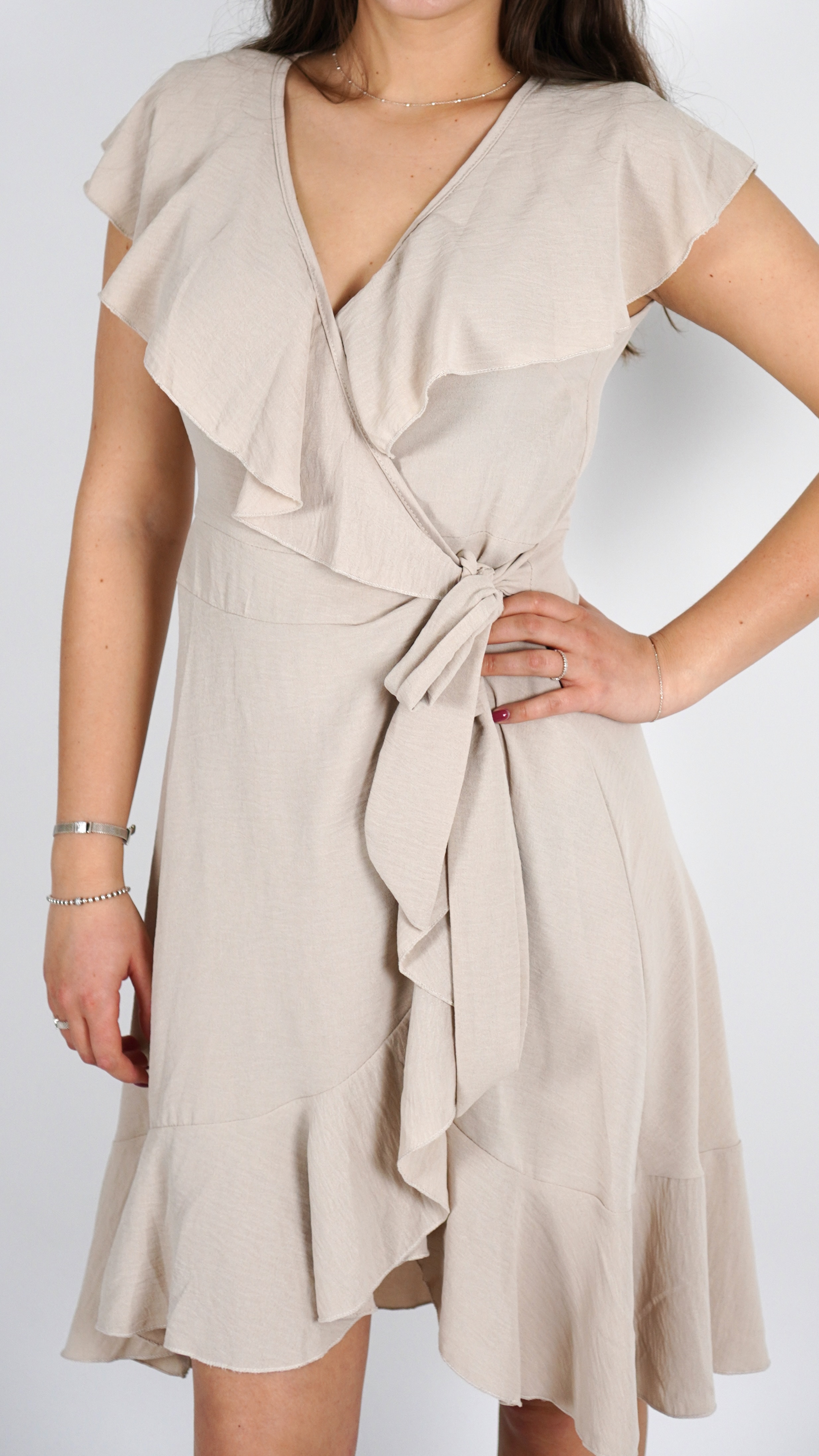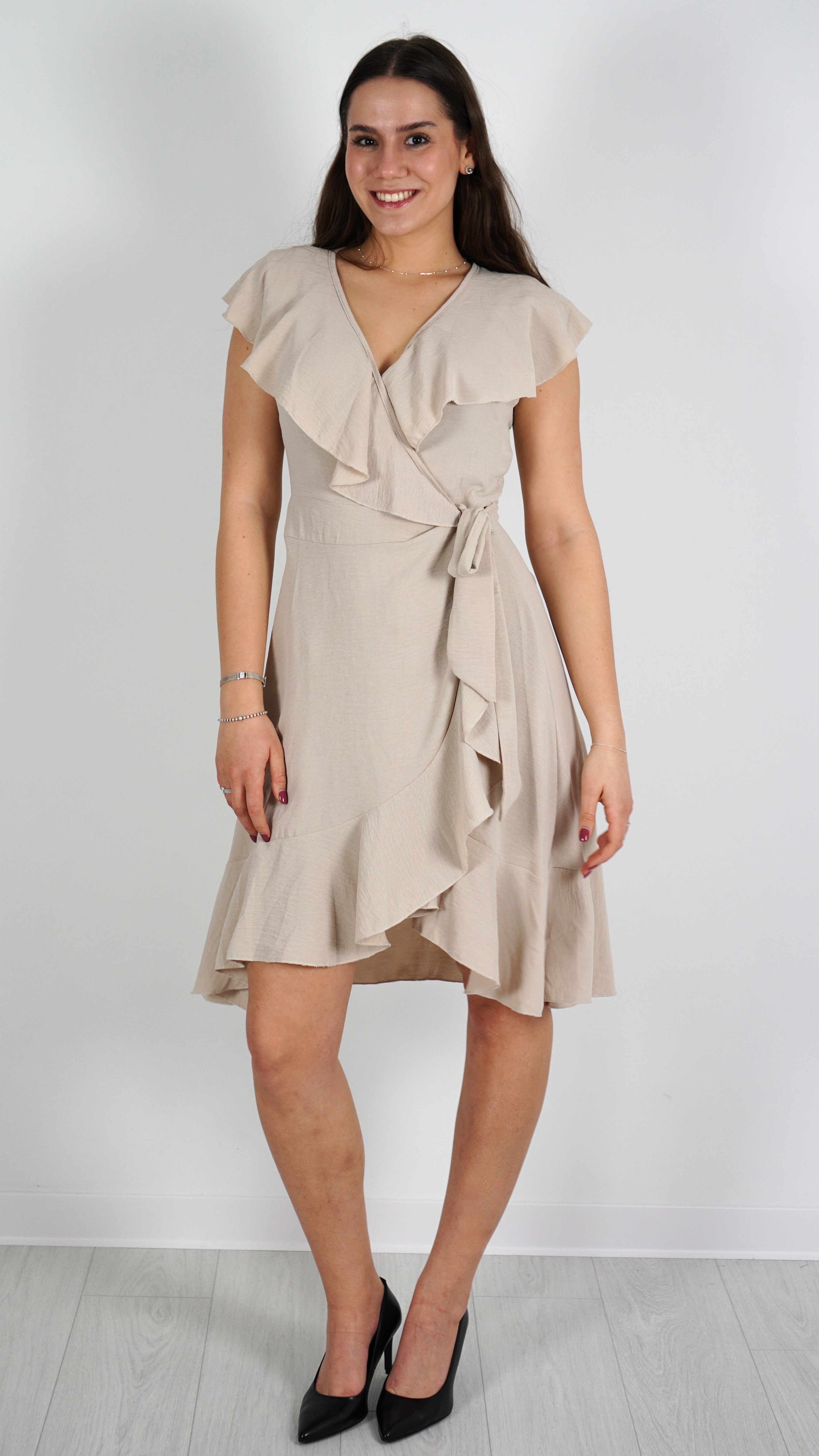 Sukienka Kopertowa z Falbankami Beżowa BABINO