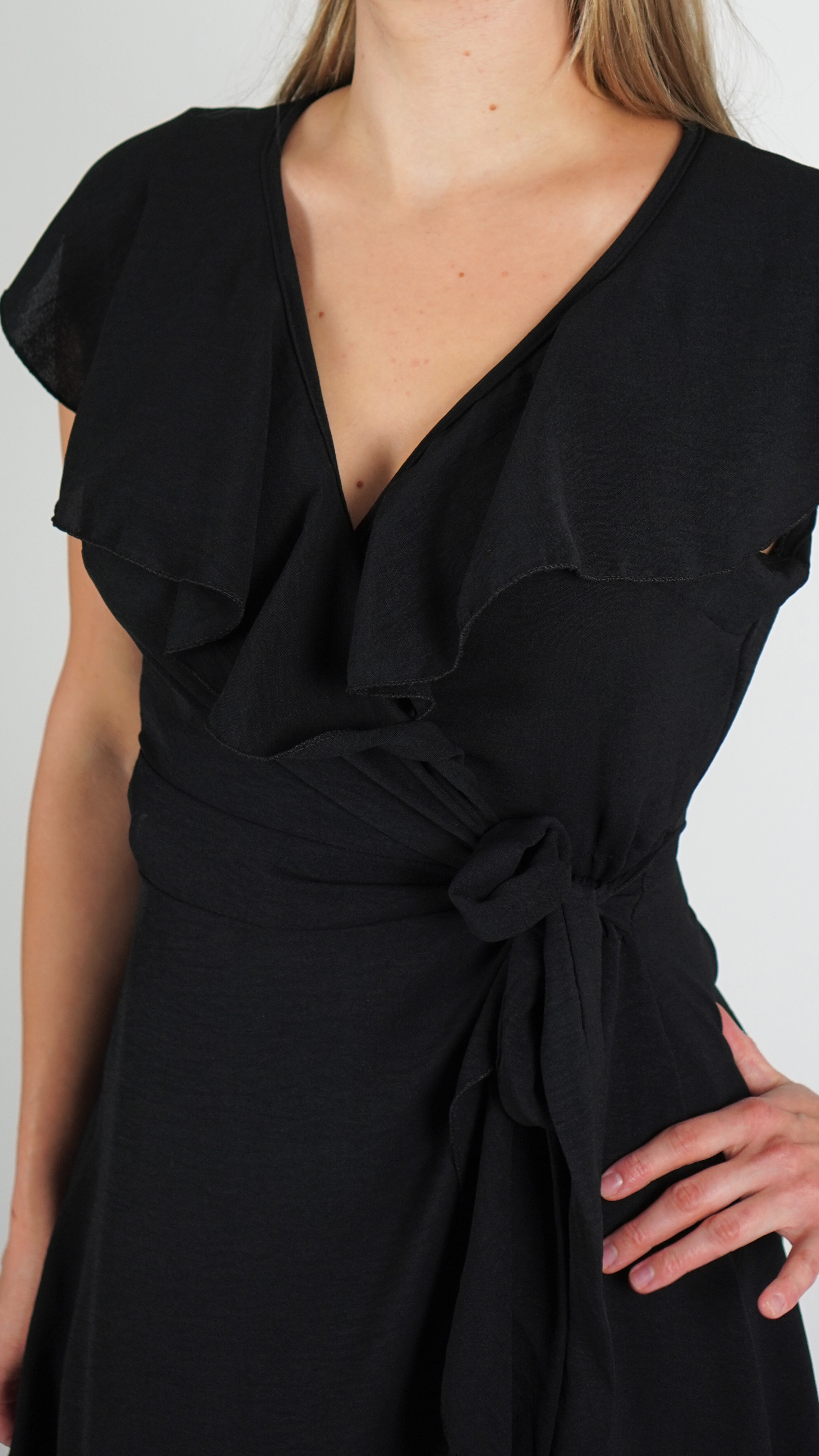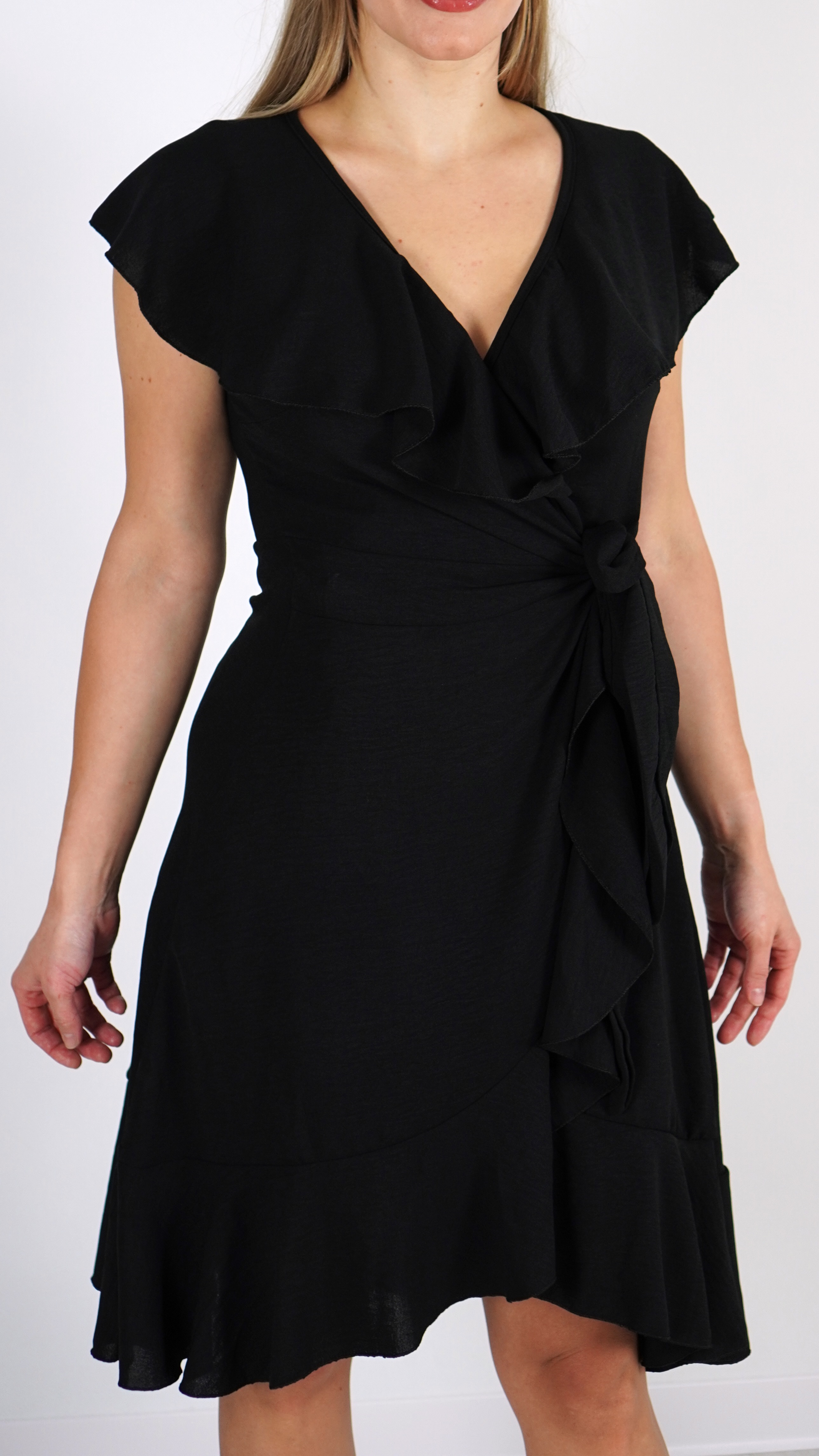 Sukienka Kopertowa z Falbankami Czarna BABINO