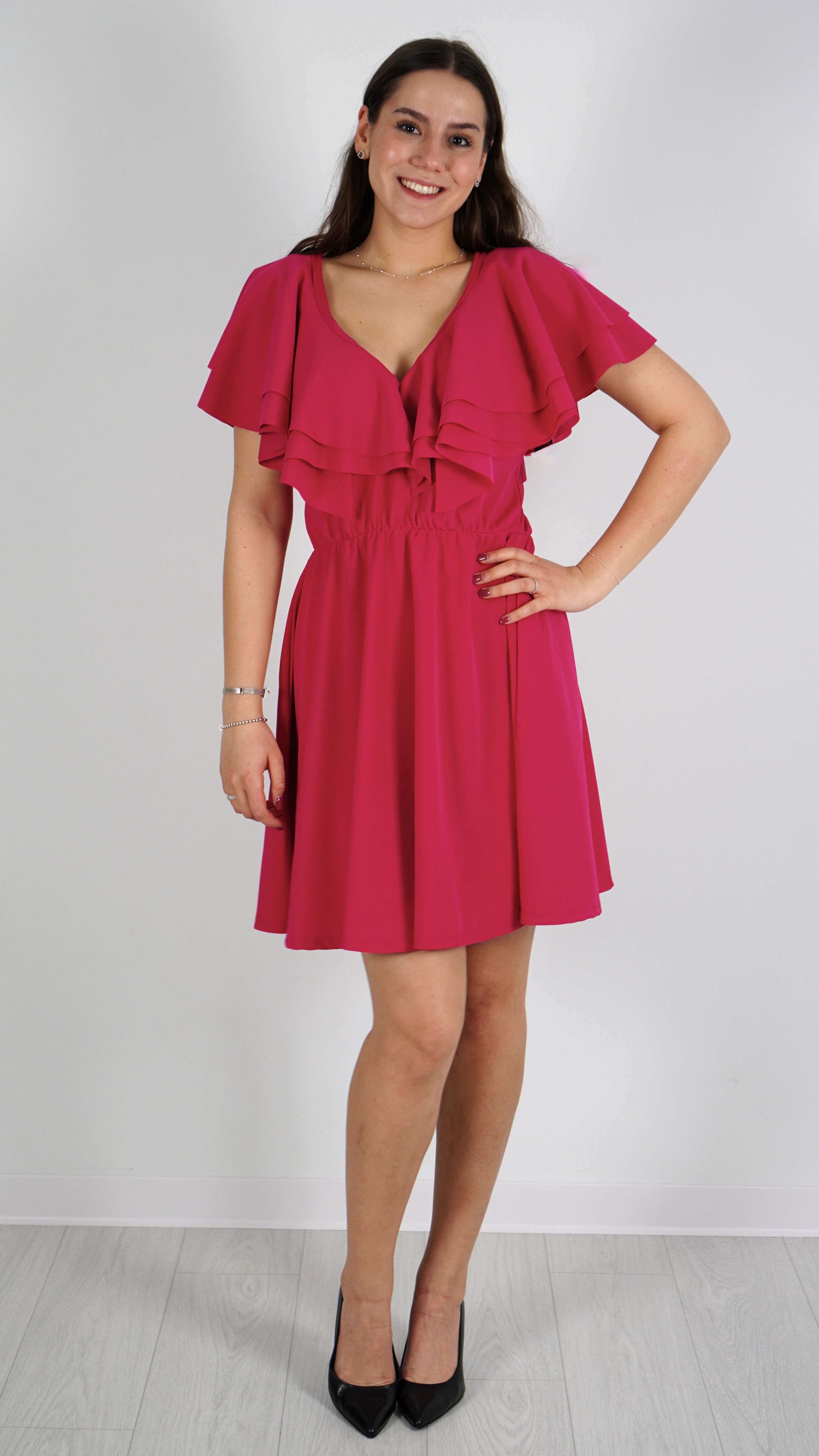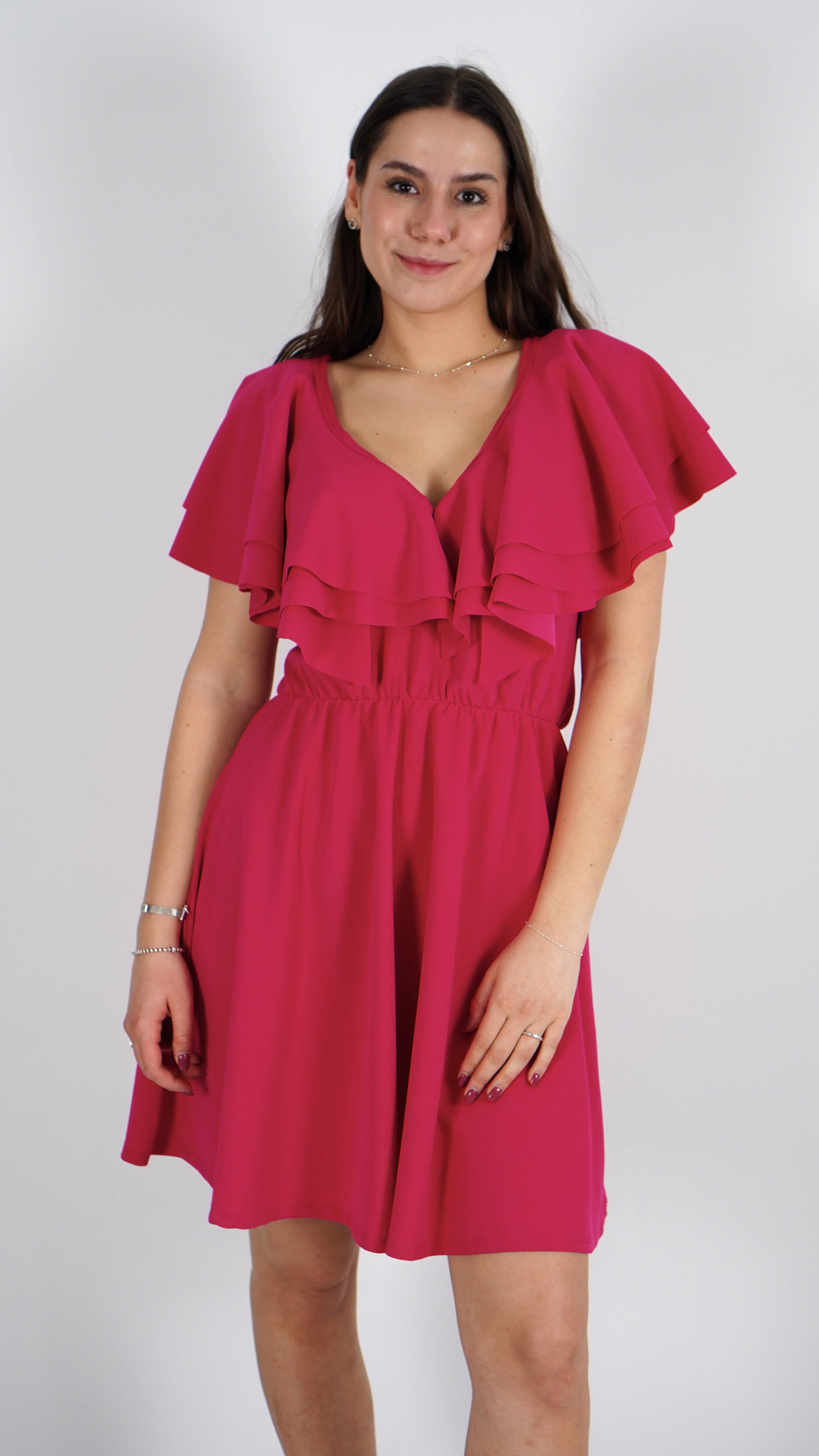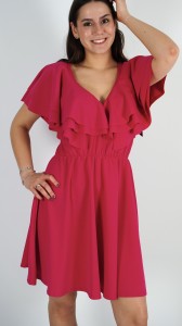 Sukienka Mini z Falbanką Różowa PAWIO