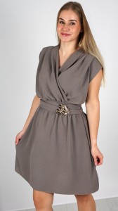 Sukienka Mini z Ozdobną Klamrą Brązowa PERONIA
